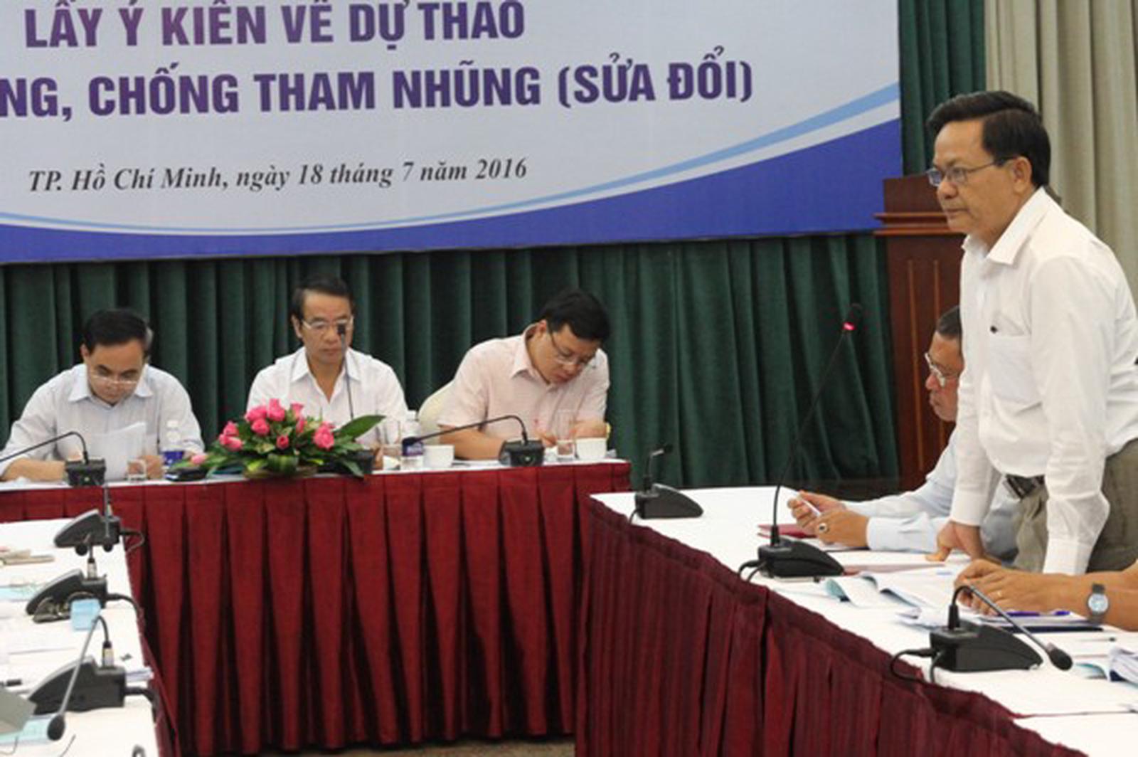 (Thanh tra)- Đây là chủ đề chính tại Hội thảo lấy ý kiến về Dự thảo Luật Phòng, chống tham nhũng (PCTN) sửa đổi do Thanh tra Chính phủ phối hợp cùng Chương trình phát triển Liên hiệp quốc (UNDP), tổ chức ngày 18/7/2016 tại TP Hồ Chí Minh, dưới sự chủ trì của Phó Tổng Thanh tra Chính phủ Nguyễn Văn Thanh.