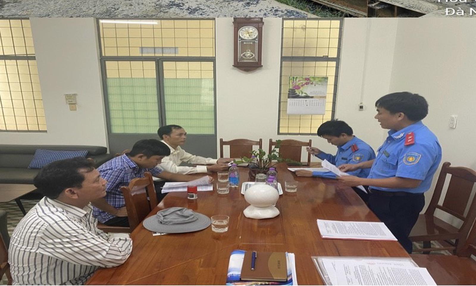 Thanh tra GTVT Đà Nẵng làm việc với các chủ xe và tài xế. Ảnh: P.T