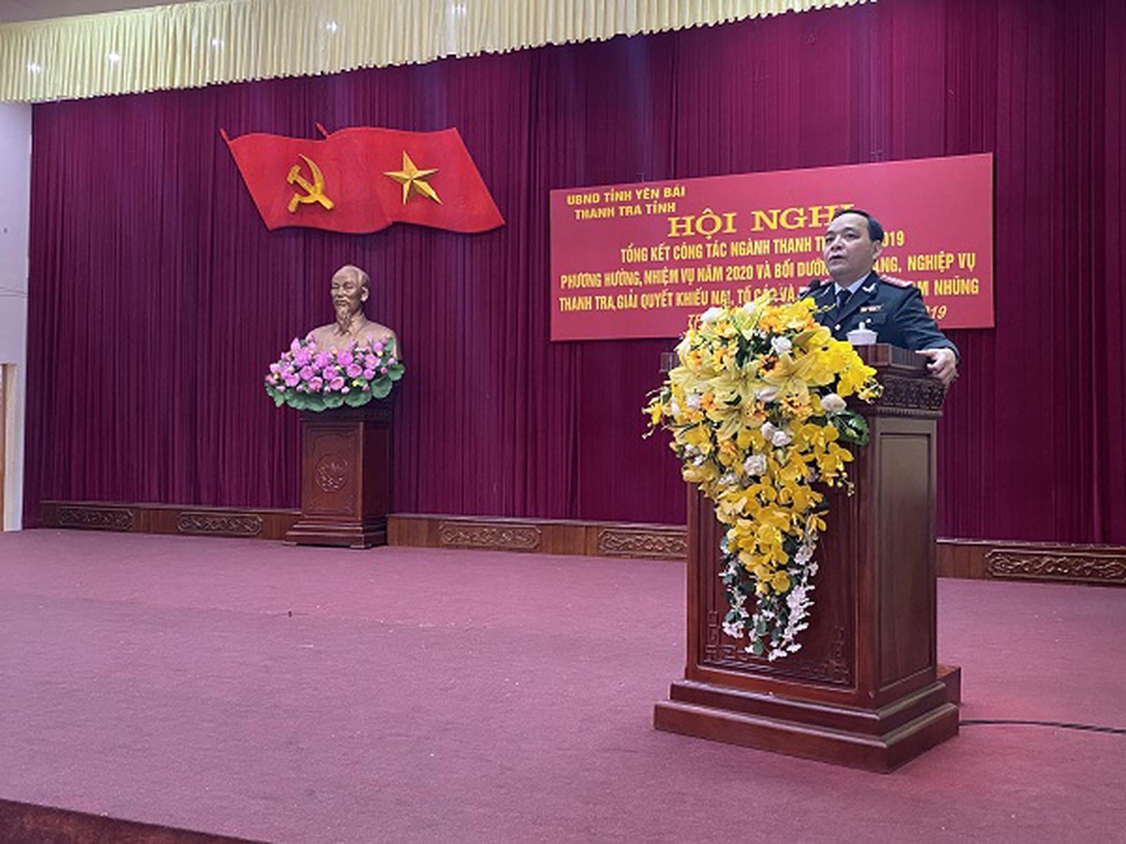 Ông Tân nhấn mạnh, năm 2020 diễn ra Đại hội Đảng bộ tỉnh Yên Bái lần thứ XIX và hướng tới Đại hội Đại biểu toàn quốc lần thứ XIII của Đảng, cũng như quá trình thực hiện các nhiệm vụ quan trọng để phát triển kinh tế - xã hội của tỉnh. Với vị trí, vai trò là cơ quan tham mưu trong công tác thanh kiểm tra, giải quyết khiếu nại, tố cáo và phòng, chống tham nhũng, đòi hỏi ngành Thanh tra phải bám sát các mục tiêu, nhiệm vụ để tập trung lãnh đạo, chỉ đạo, tổ chức thực hiện quyết liệt ngay từ đầu năm.