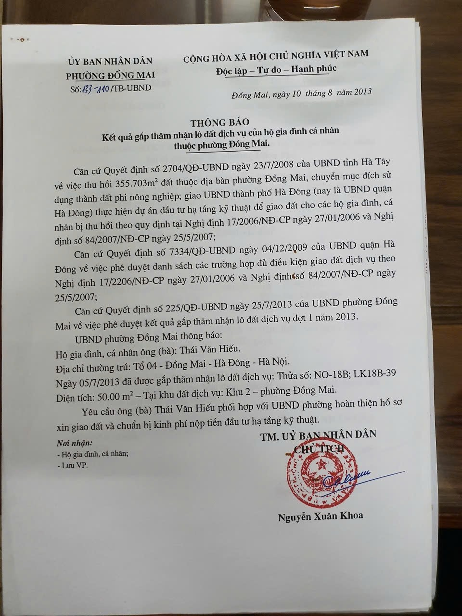 Được biết, ngày 28/10/2013 Ban QLDA ĐTXD Hà Đông đã có Tờ trình số 679/CV-BQLDA gửi Phòng Quản lý Đô thị quận Hà Đông về việc điều chỉnh quy hoạch cục bộ Khu 2 đất dịch vụ Đồng Mai, và ngày 30/10/2013 Phòng Quản lý Đô thị quận Hà Đông đã có Văn bản thẩm định số 328/QLĐT, tiếp đến ngày 05/11/2013 UBND quận Hà Đông ban hành Quyết định số 1916/UBND-DLĐT về việc điều chỉnh quy hoạch cục bộ Khu 2 đất dịch vụ Đồng Mai.