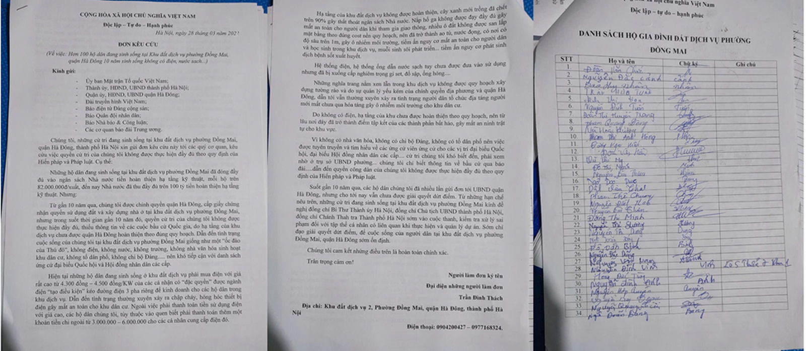Riêng với trường hợp ông Trần Đình Thách, ông đã có đơn thư kiến nghị lên UBND quận Hà Đông và qua Cổng thông tin điện tử thành phố Hà Nội từ năm 2018, 2021 nhưng đến nay ông vẫn đang phải mang đơn tới các cơ quan chức năng, phản ánh việc chưa được cấp điện sinh hoạt suốt những năm qua. Do đó, việc Ban QLDA ĐTXD Hà Đông cho rằng những hộ chưa có điện là phát sinh vào cuối năm 2023 là điều không thỏa đáng.