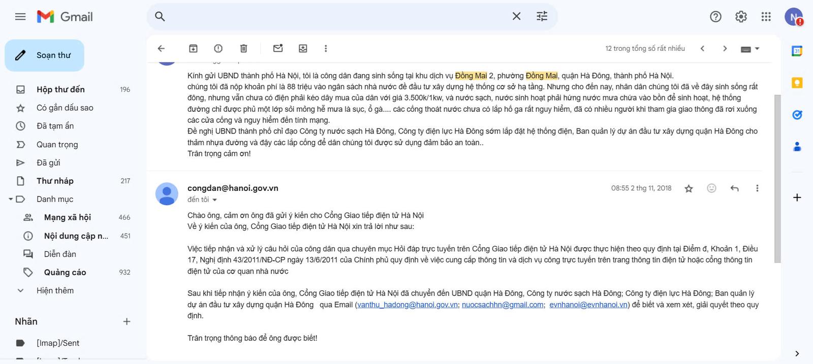 Cũng trong văn bản nêu trên, Ban QLDA ĐTXD Hà Đông đã xác nhận: “Đến năm 2022, khoảng 100 hộ dân sau khi nhận đất và xây dựng nhà cửa, UBND quận Hà Đông đã chỉ đạo các đơn vị chủ đầu tư và Công ty Điện lực Hà Đông tiến hành khắc phục xong được 50% khối lượng toàn khu, đến tháng 6/2022 Công ty Điện lực Hà Đông đã nghiệm thu đóng điện tiếp nhận hồ sơ mua bán điện để tiến hành cung cấp điện cho nhân dân.