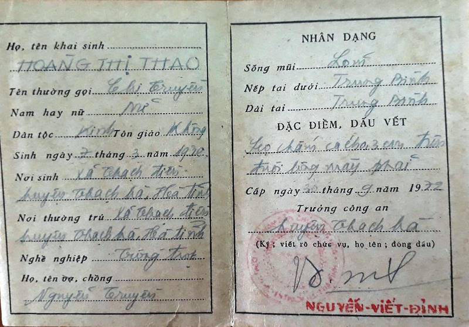 Thẻ căn cước của bà Hoàng Thị Thao. Ảnh: HY
