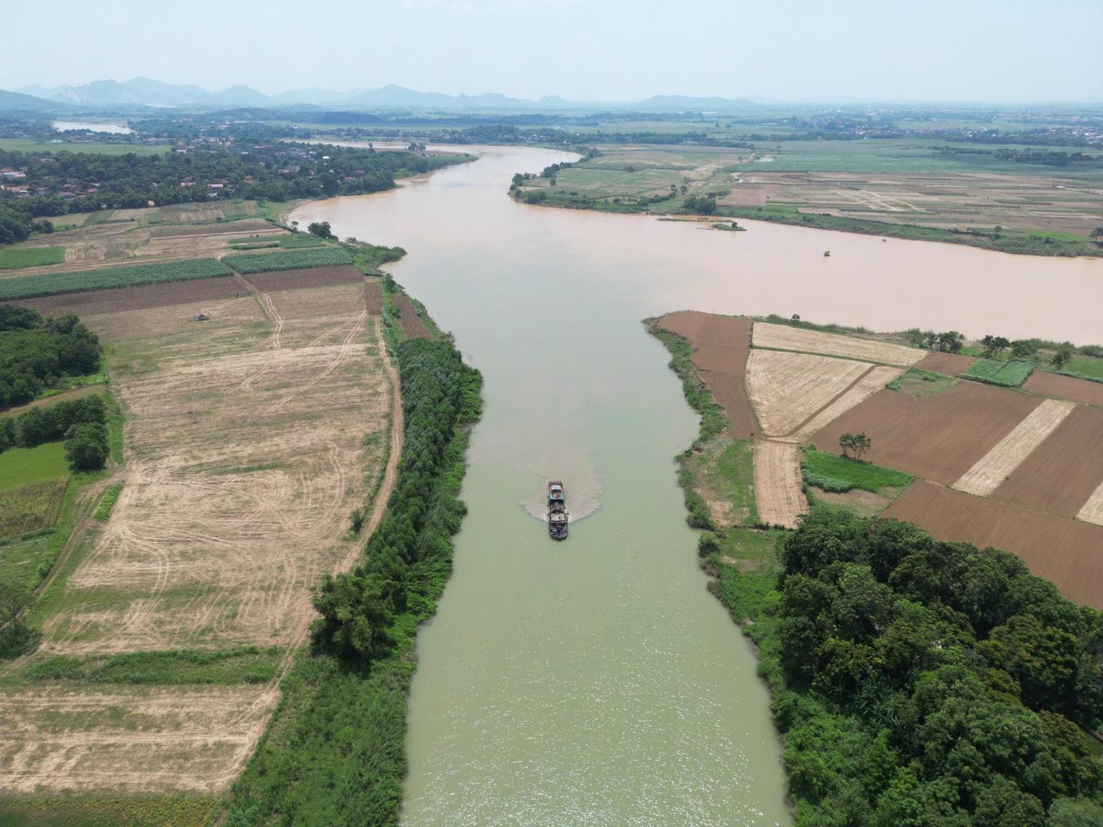 Khai thác cát trái phép diễn ra tại sông Bưởi (khu vực gần ngã ba sông). Ảnh: Hương Trà