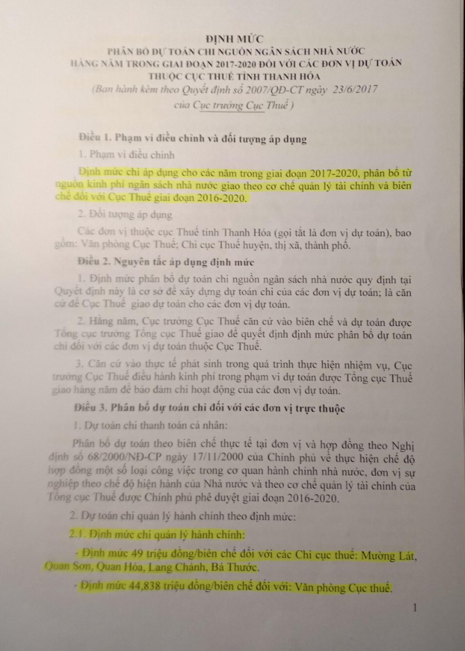 Việc Cục trưởng Cục Thuế Thanh Hóa nêu trong tờ trình định mức biên chế chỉ 19 triệu đồng là không đúng thực tế. Ảnh: VT