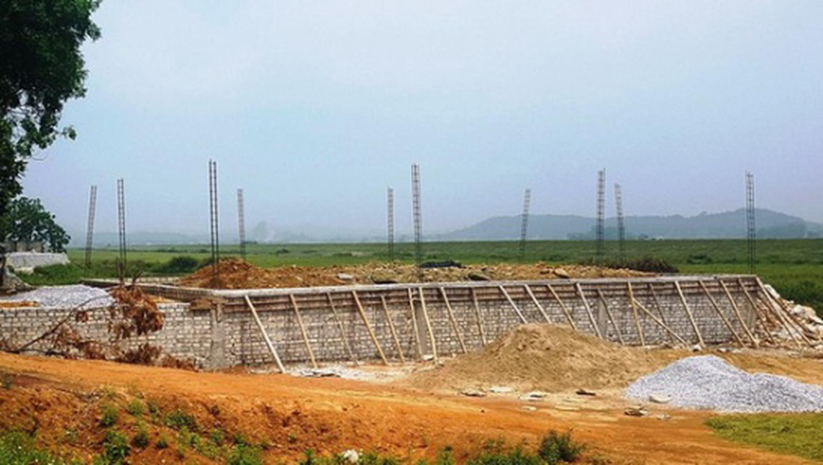Đất bán ngay dưới lòng sông Hoạt tại xã Hà Tiến, người dân đã làm móng để xây dựng nhà ở. Ảnh: VT