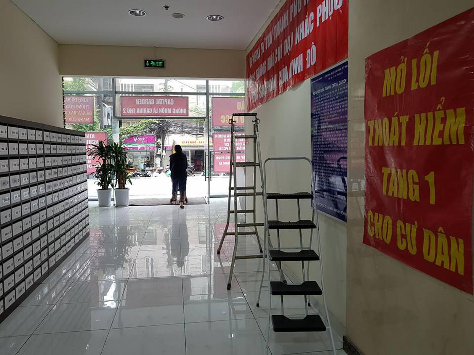 Đại diện ban đại diện lâm thời của chung cư Capital Garden cũng không đồng ý làm việc với ông Hùng với tư cách đại diện cho chủ đầu tư bởi không có giấy ủy quyền để báo cáo về quá trình khắc phục các hành vi vi phạm về trật tự xây dựng và PCCC tại tòa nhà Capital Garden.