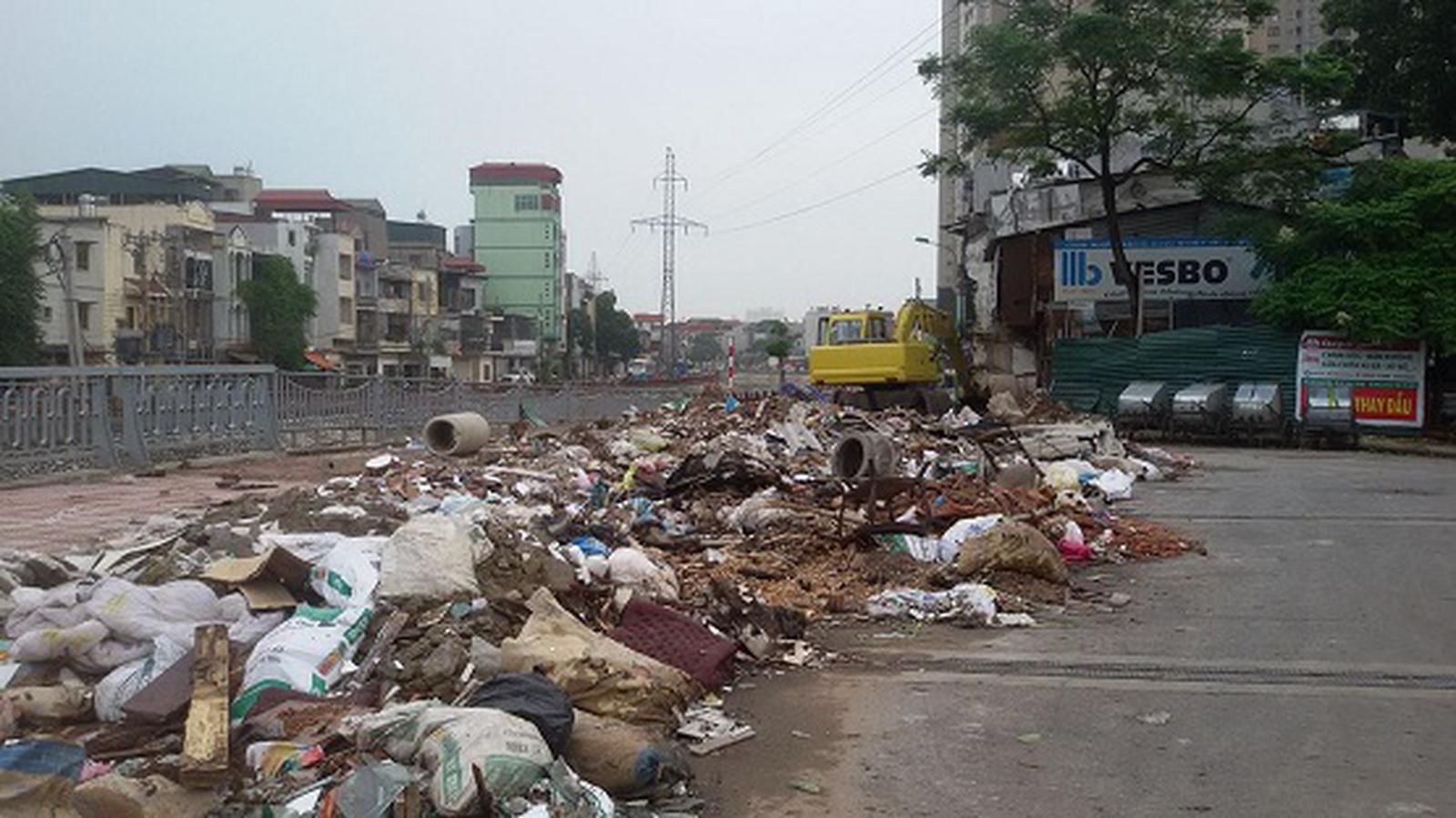 Vẫn còn khá nhiều rác thải xây dựng tại khu vực cầu Sét. Ảnh: OH
