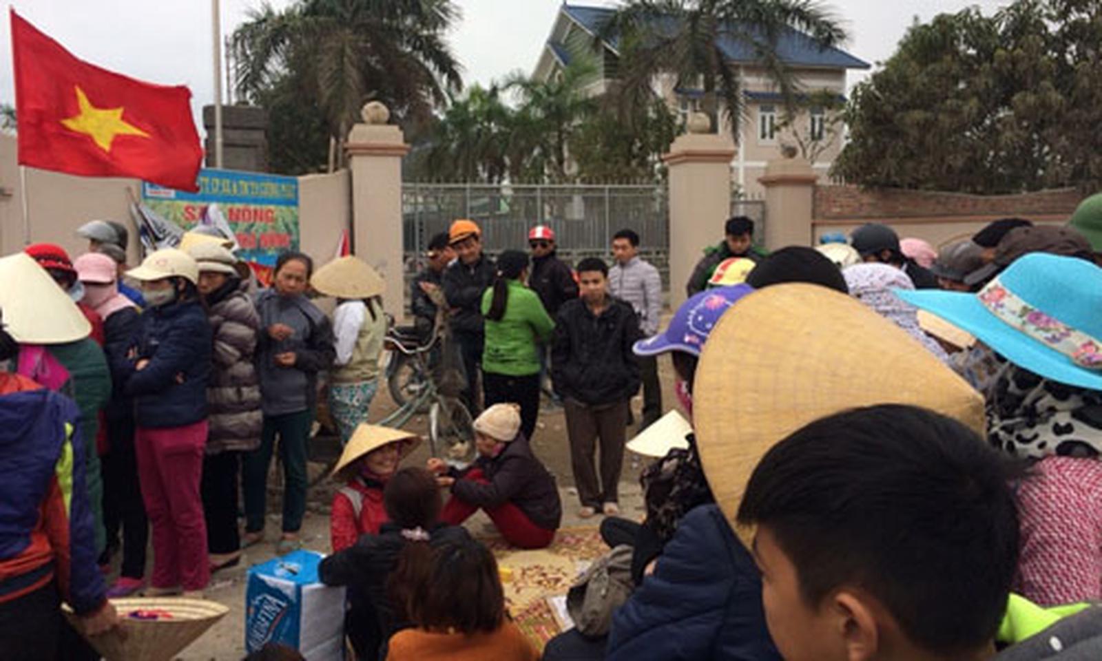 Người dân tập trung trước cổng Nhà máy phản đối việc gây ô nhiễm. Ảnh: Văn Thanh