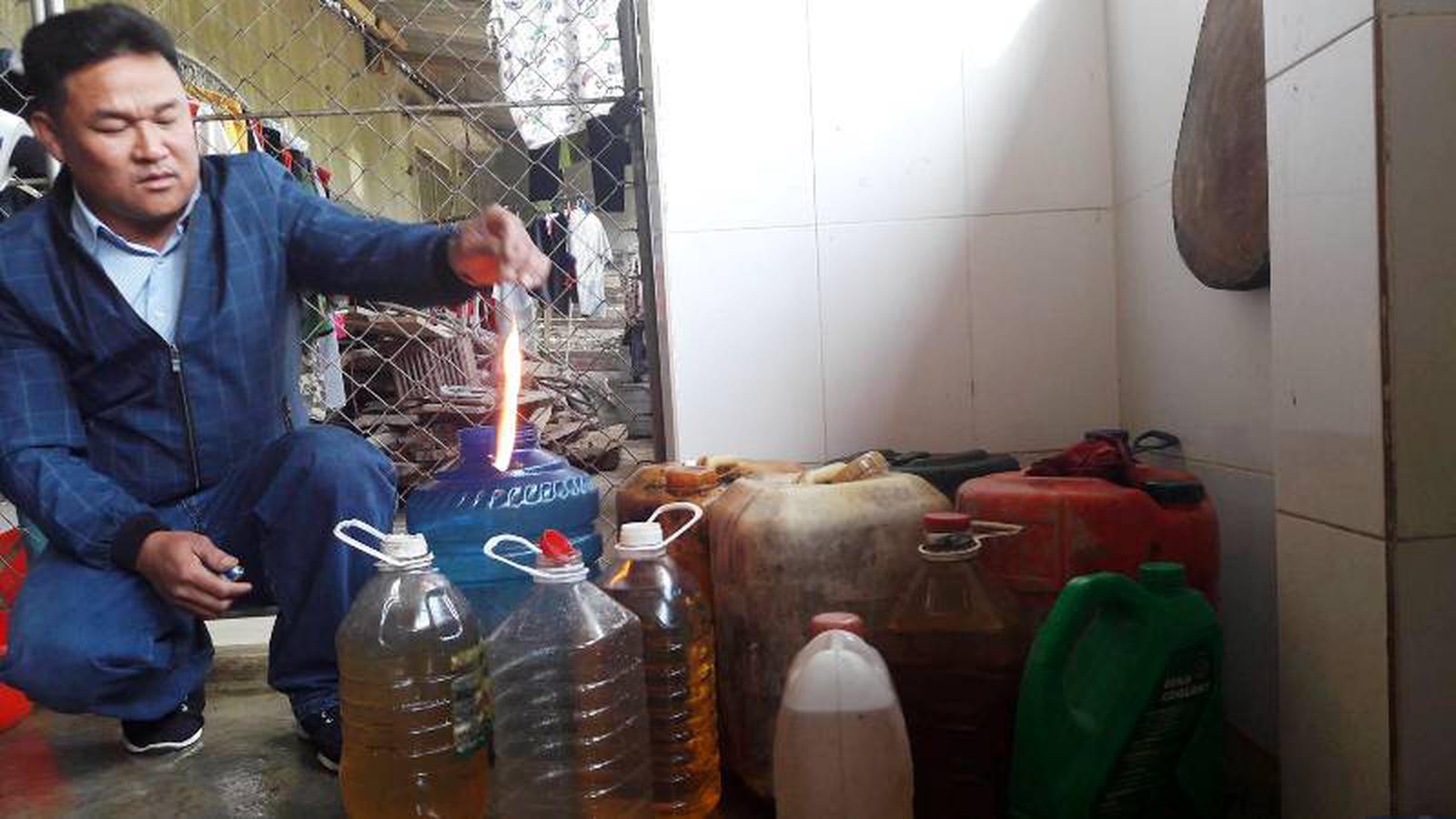 Do sự cố rò rỉ dầu từ bồn chứa, người dân vớt được hàng trăm lít dầu từ giếng nước sinh hoạt. Ảnh: HY