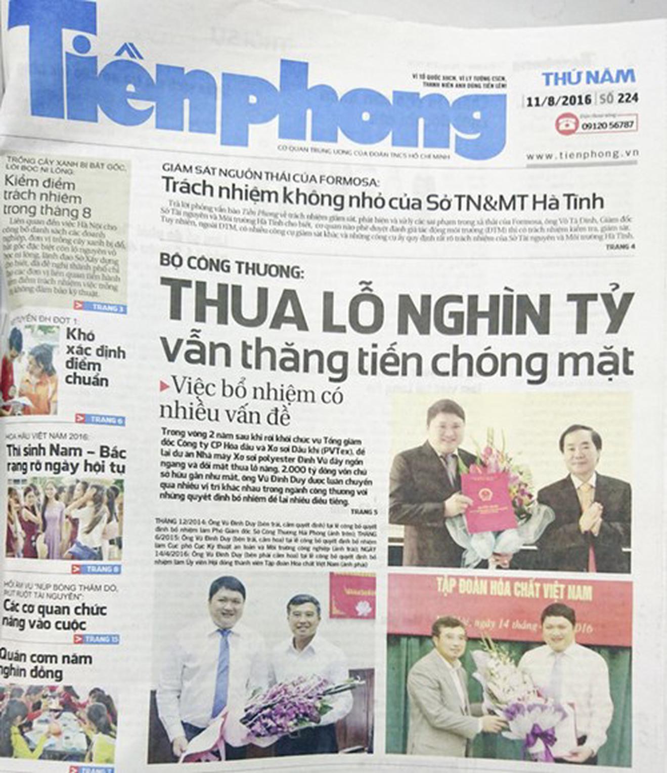 Theo đó, báo Tiền Phong đề nghị Thành ủy Hải Phòng cho biết: Việc tiếp nhận và bổ nhiệm ông Duy do Bộ Công Thương gửi gắm hay Thành ủy, UBND TP Hải Phòng đề nghị xin ông Duy về? Việc bổ nhiệm ông Duy có đảm bảo các điều kiện, tiêu chuẩn theo quy định hay không? Thành ủy Hải Phòng đánh giá thế nào về năng lực, phẩm chất đạo đức của ông Duy sau 6 tháng ông này giữ chức Phó giám đốc Sở Công Thương?