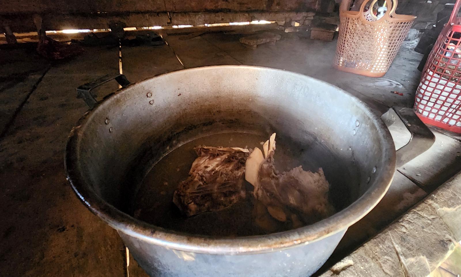 Một con bò dự án sau khi người dân nhận về bị chết và đã bị làm thịt, chế biến thành món ăn. Ảnh: Minh Tân