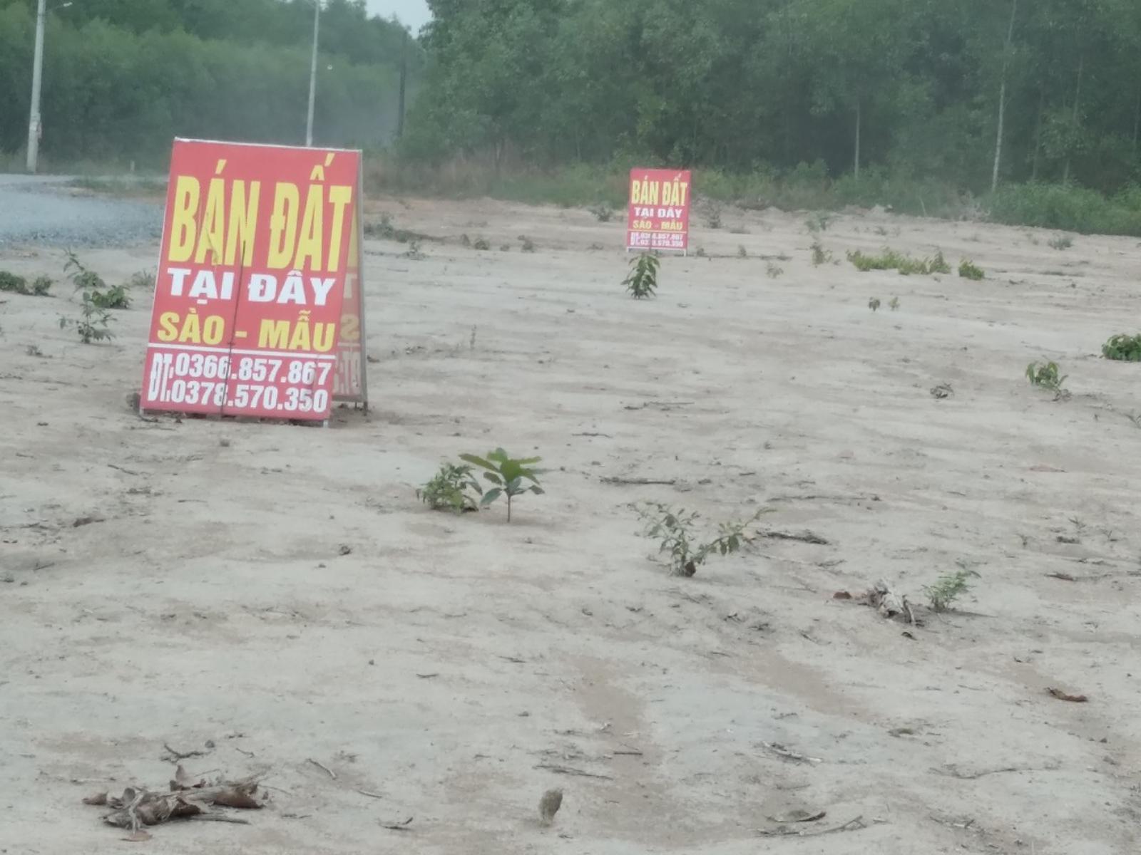 Sau khi tự ý làm đường trên đất nông nghiệp, các “đầu nậu” ngang nhiên dựng biển rao bán đất. Ảnh: Nguyên Dũng