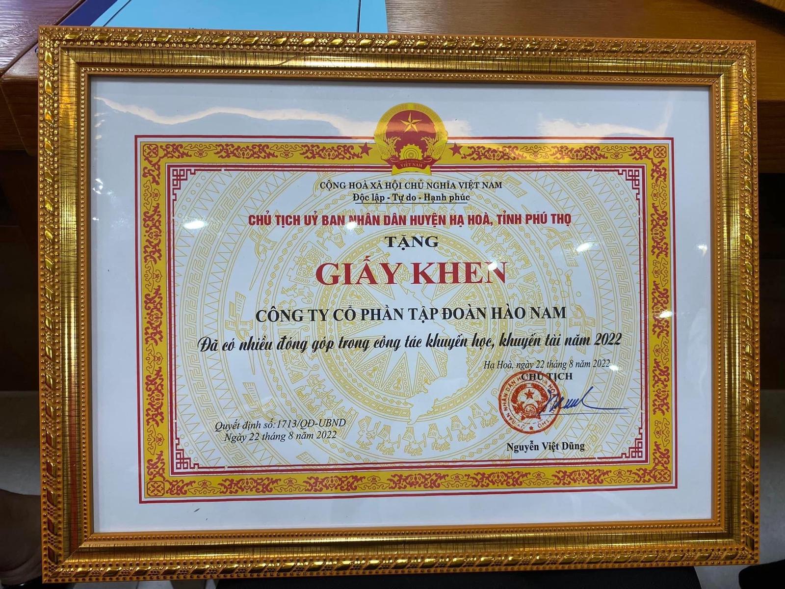 Hào Nam Group mang cả giấy khen của UBND huyện Hạ Hòa do ông Nguyễn Việt Dũng, Chủ tịch UBND huyện, nay là Giám đốc Sở Công thương tỉnh Phú Thọ, ký tặng để đi lừa nhiều người. Ảnh: ND
