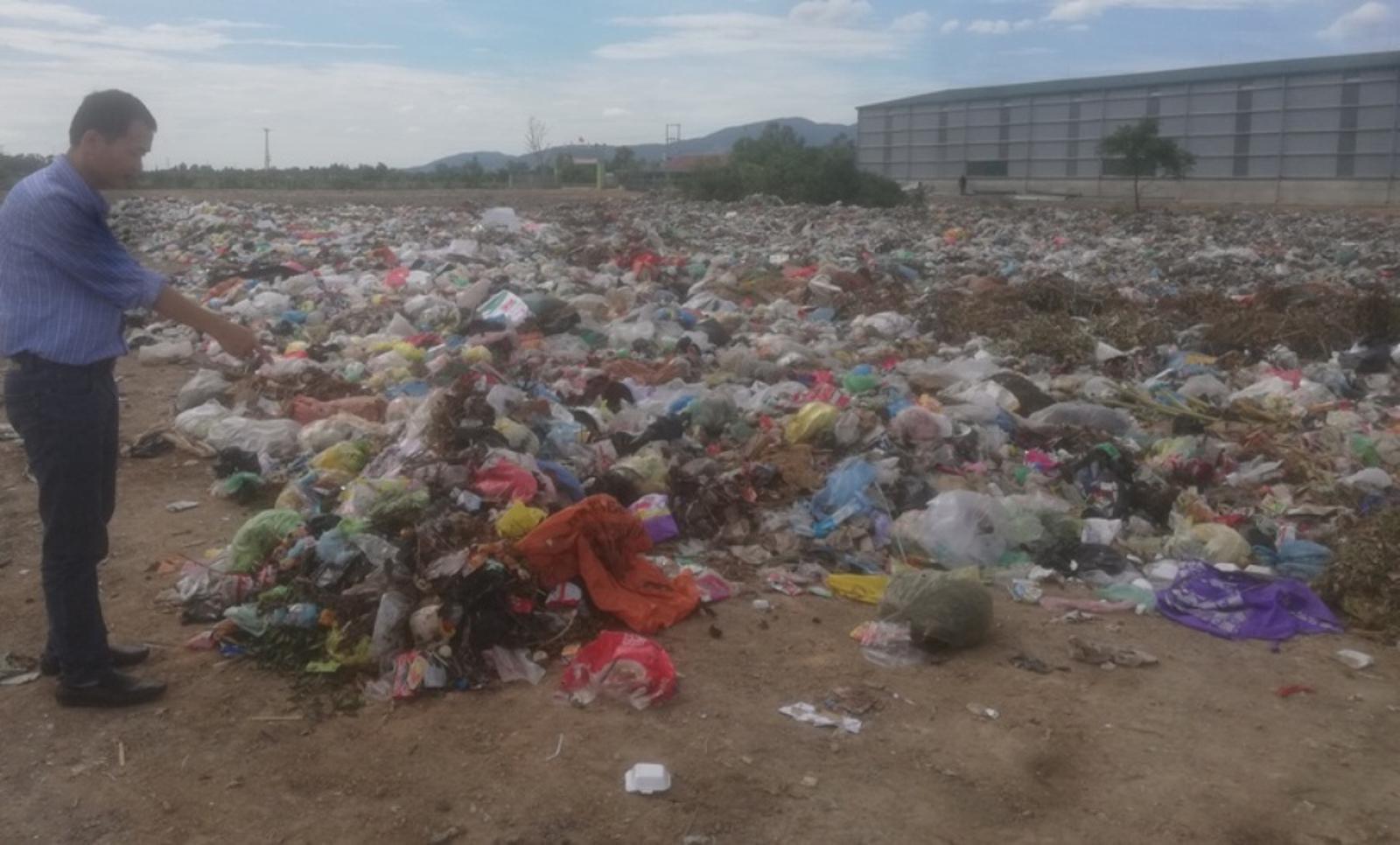 Bãi rác thải nằm lộ thiên của Nhà máy Xử lý rác thải sinh hoạt (Công Ty TNHH Thương mại & Xử lý Môi trường Can Lộc Hà Tĩnh làm chủ đầu tư), đang gây ô nhiễm nặng. Chỉ một trận mưa toàn bộ rác thải, chất bẩn sẽ bị chảy thẳng xuống sông Nghèn. Ảnh: Nguyên Dũng