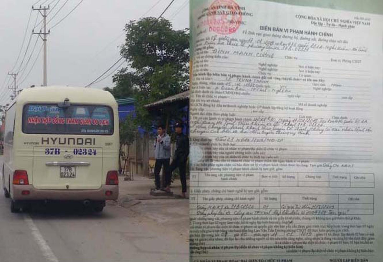 Tại thời điểm bị Phòng CSGT, Công an tỉnh Hà Tĩnh xử lý vi phạm, tài xế Lê Trung Thành đang trong thời gian bị Công an TP Vinh (tỉnh Nghệ An) tạm giữ giấy phép lái xe theo Biên bản vi phạm hành chính số 0004729.