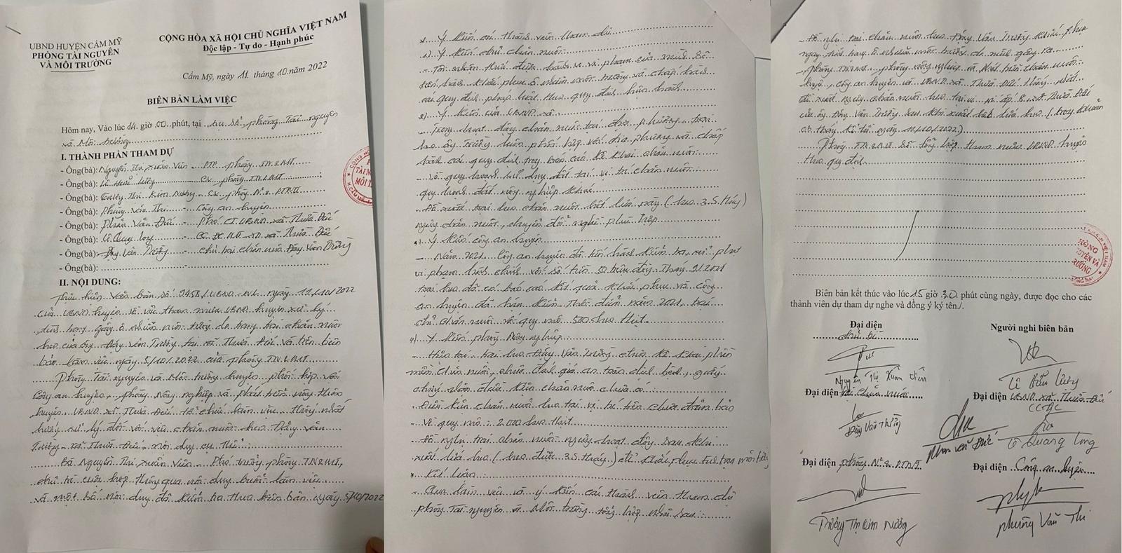 Kết luận tại “biên bản làm việc” ghi rõ: “Qua buổi làm việc và ý kiến các thành viên tham dự, Phòng Tài nguyên và Môi trường tổng hợp như sau: Đề nghị trại chăn nuôi heo của ông Đặng Văn Trường khắc phục ngay tình trạng ô nhiễm môi trường đã gây ra. Phòng Tài nguyên và Môi trường, Phòng Nông nghiệp và Phát triển Nông thôn, Công an huyện và UBND xã Thừa Đức thống nhất đề xuất ngưng chăn nuôi heo tại vị trí ấp 8, xã Thừa Đức của ông Đặng Văn Trường sau khi xuất hết lứa heo đang nuôi (trong vòng 3 tháng kể từ ngày 11/10/2022)”.