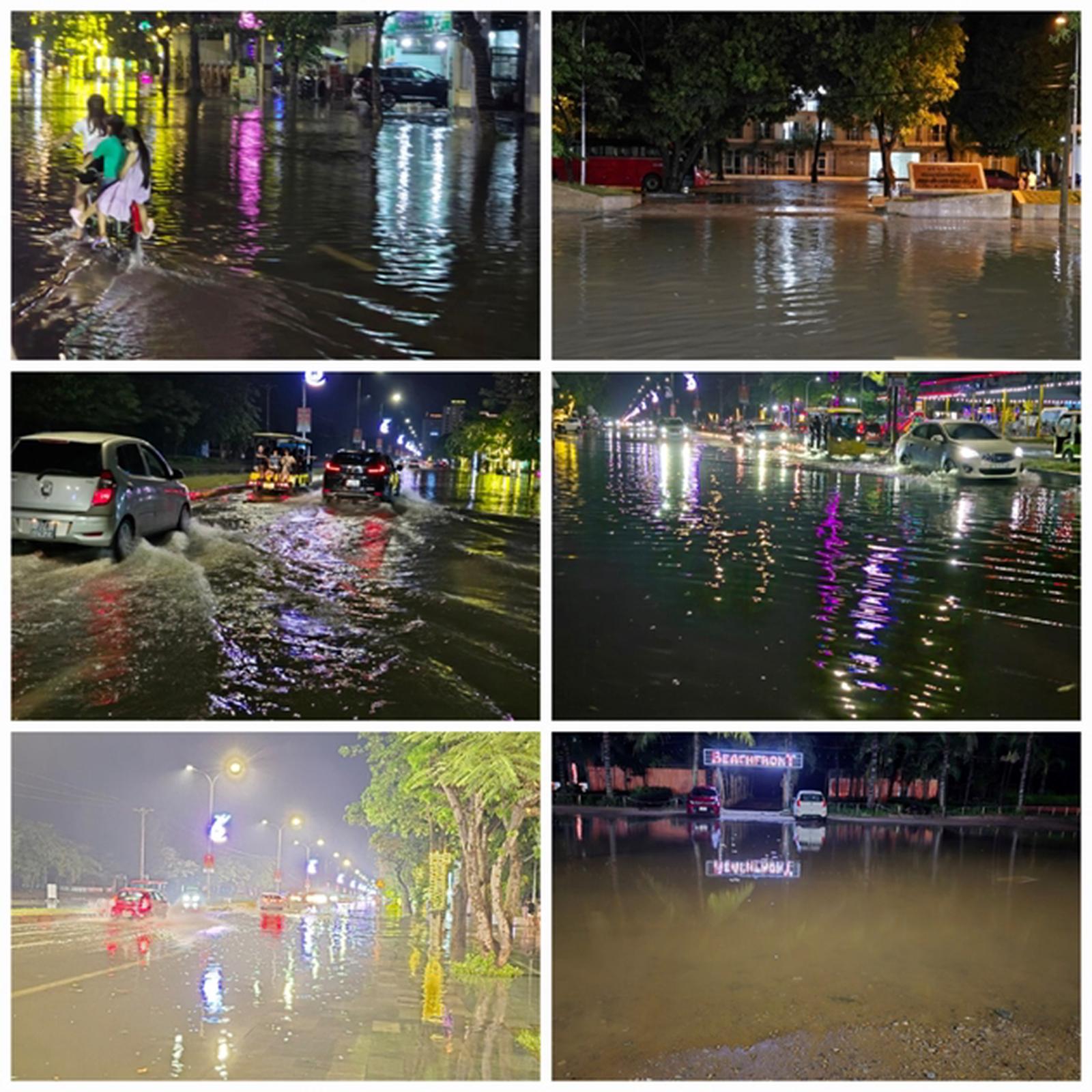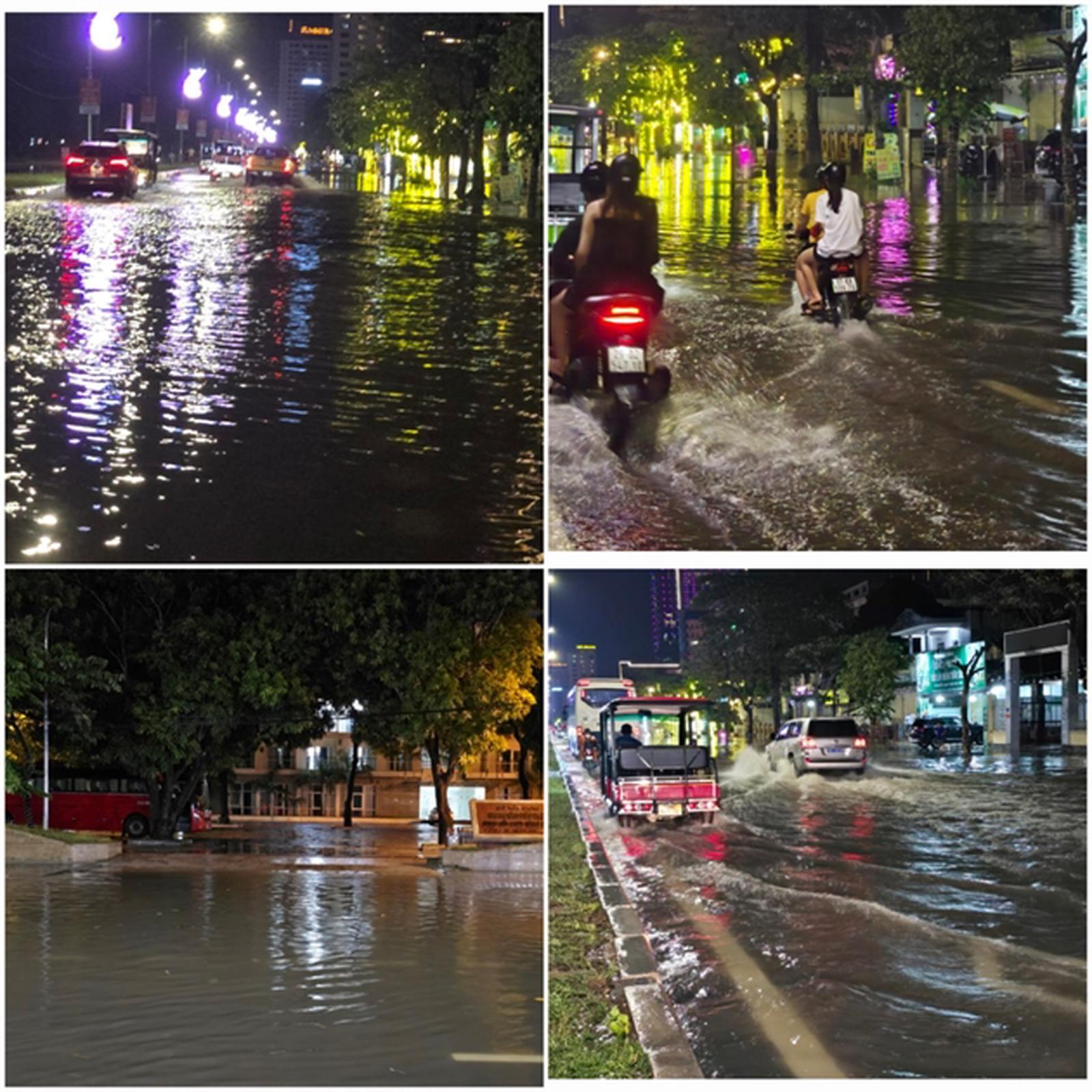 Đường biến thành sông mỗi khi mưa xuống ở thị xã Cửa Lò. Ảnh: VT