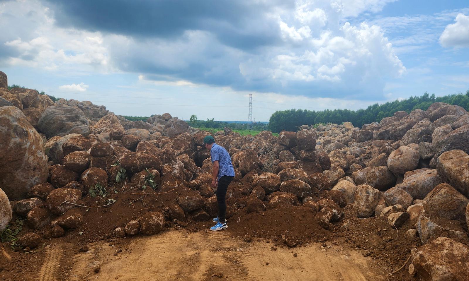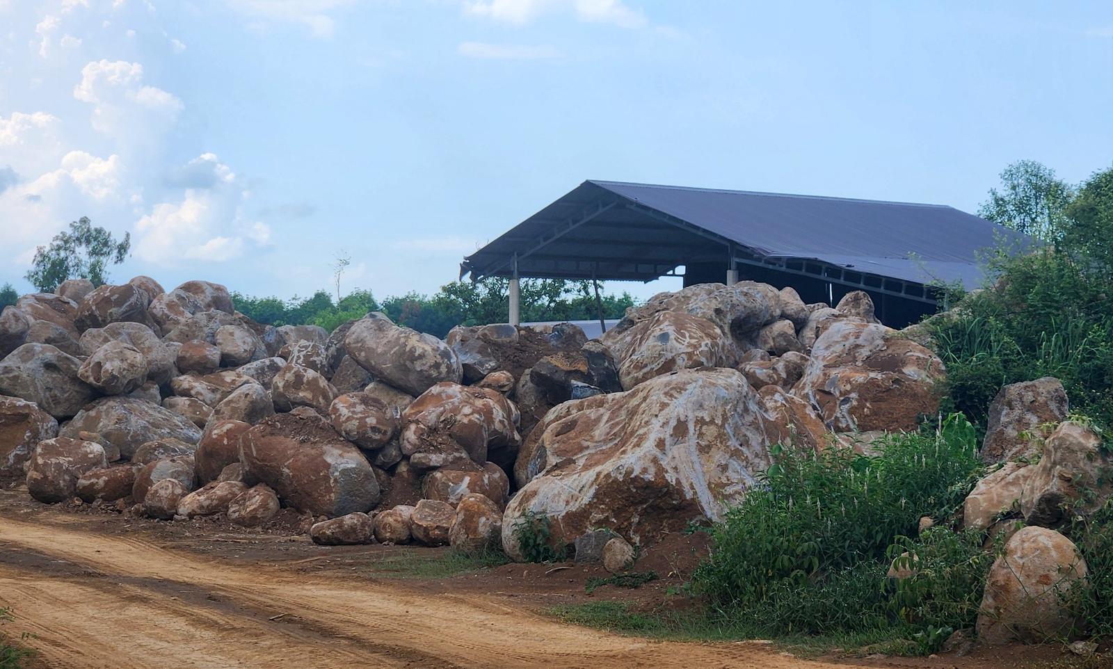 Hàng nghìn khối đá được tập kết của ông Dương Văn Tráng được cơ quan chức năng xác định không có giấy phép chứng minh nguồn gốc. Ảnh: Minh Tân