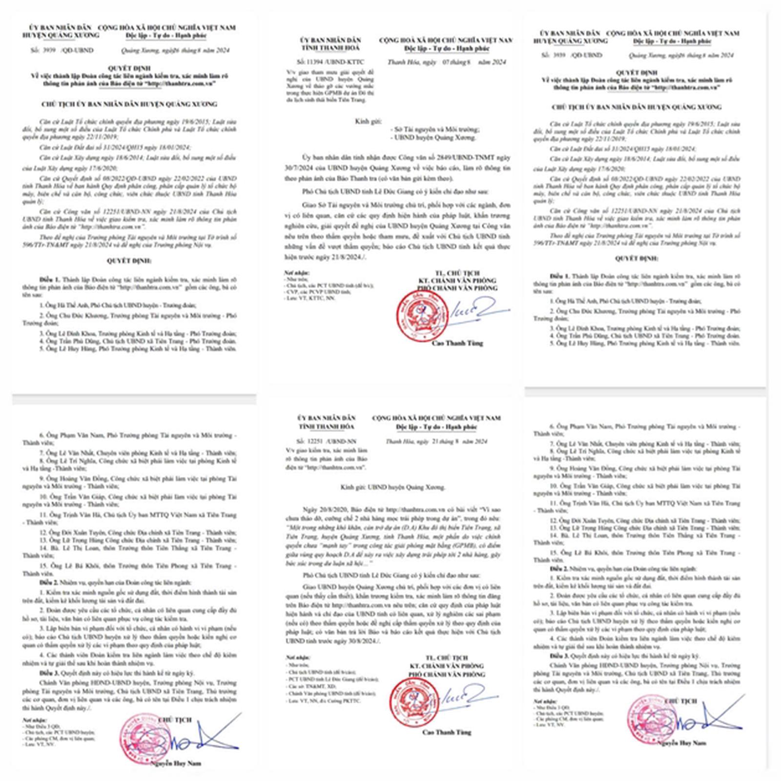 Hiện nay, sau khi Báo Thanh tra phản ánh về vụ việc, ngày 21/8/2024, ông Lê Đức Giang, Phó Chủ tịch UBND tỉnh Thanh Hóa đã có Công văn số 12251/UBND-NN ngày 21/8/2024 giao UBND huyện Quảng Xương kiểm tra nội dung, đồng thời báo cáo kết quả thực hiện với Chủ tịch UBND tỉnh và có văn bản trả lời Báo Thanh tra trước ngày 30/8/2024.