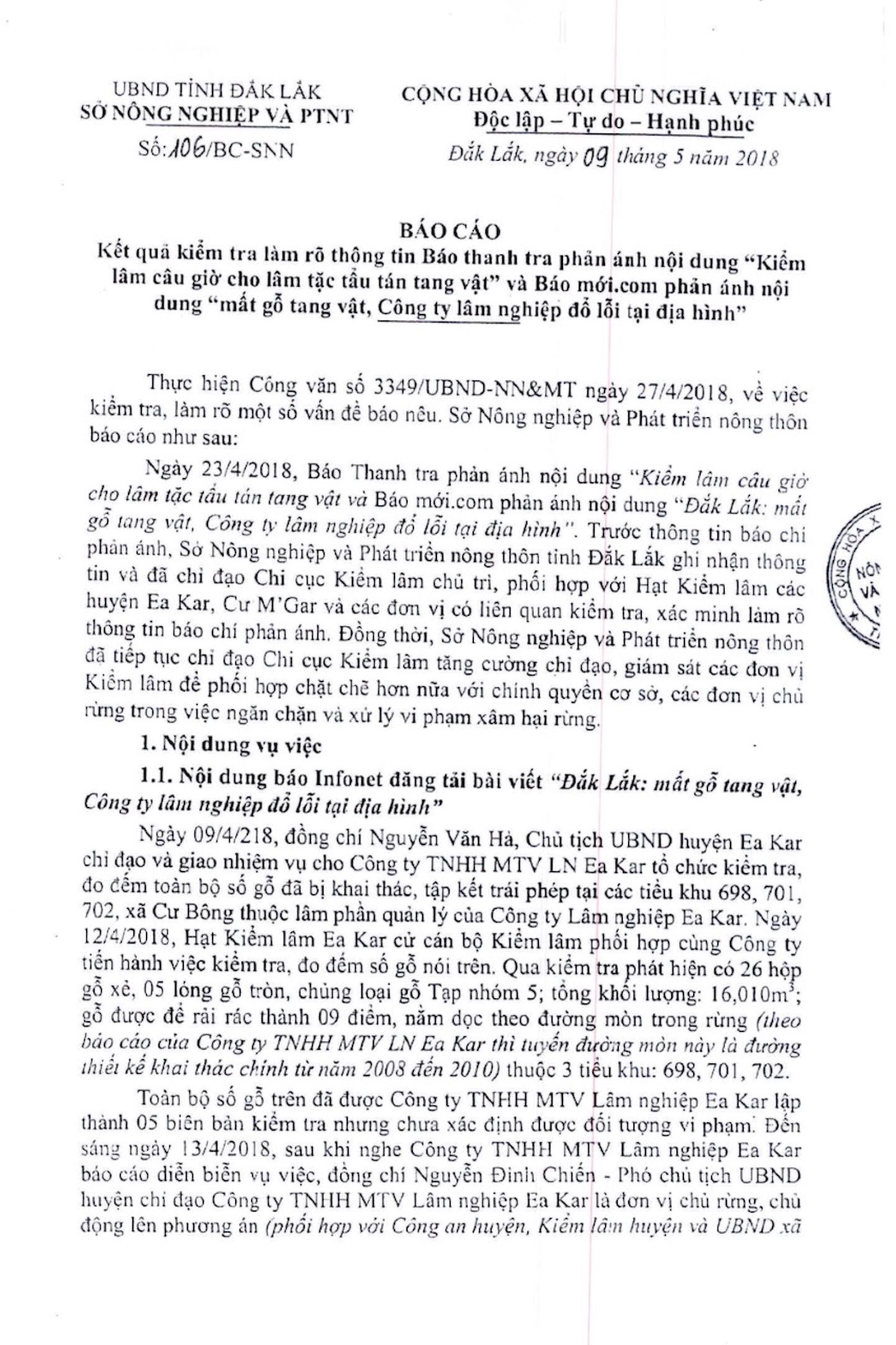 Sở Nông nghiệp và Phát triển nông thôn tỉnh Đắk Lắk cũng có Báo cáo số 106/BC-SNN ngày 09/5/2018 về kết quả kiểm tra thông tin mà Báo Thanh tra phản ánh.