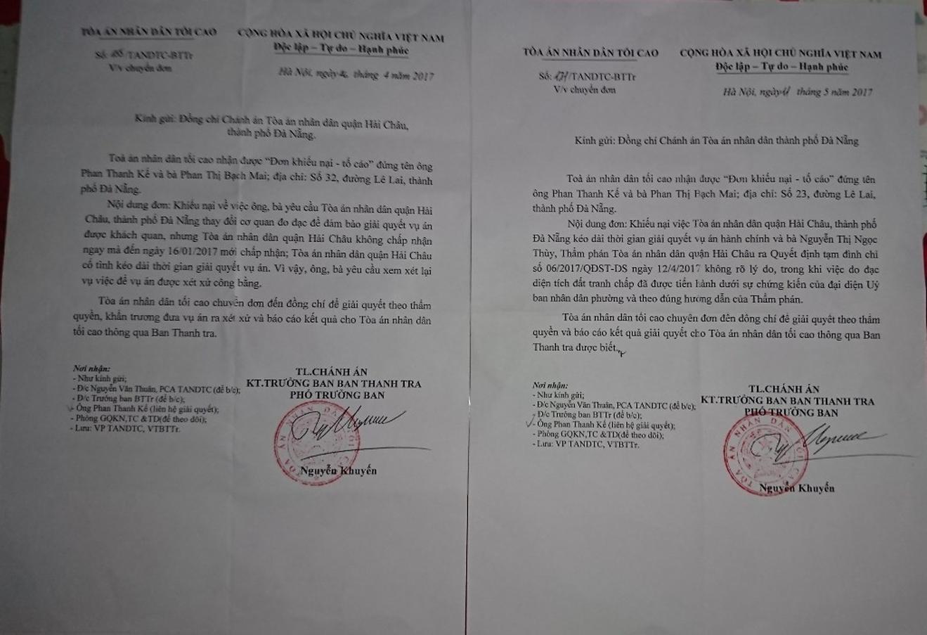 TAND Tối cao đã 3 lần có văn bản gửi Chánh án TAND TP Đà Nẵng, Chánh án TAND quận Hải Châu yêu cầu sớm đưa ra xét xử vụ án.