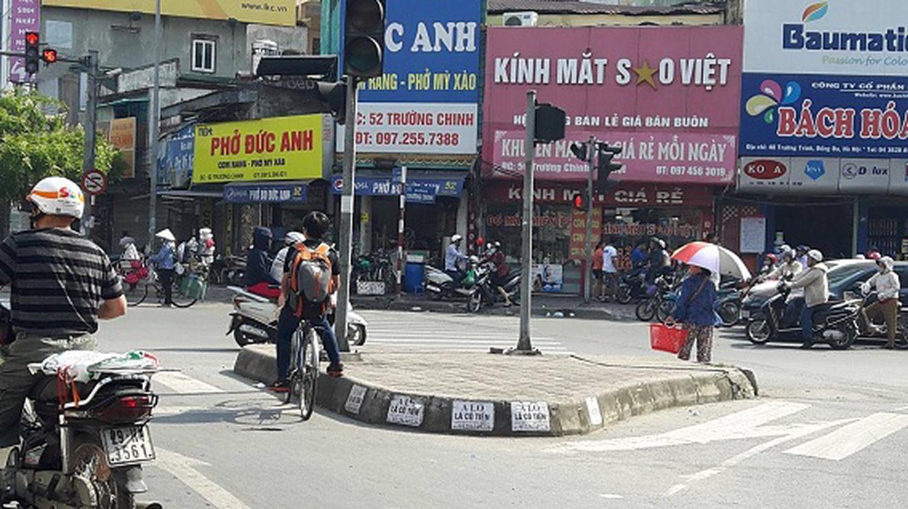 Rao vặt tràn xuống cả vỉa hè gây mất tập trung cho người tham gia giao thông và mất mỹ quan đô thị tại Ngã tư Trường Chinh - Giải Phóng ngày 28/5. Ảnh: T.A