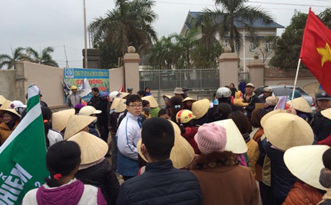 Người dân xã Đông Vinh nhiều ngày tập trung phản đối nhà máy phân bón Sao Nông gây ô nhiễm. Ảnh: Lam Sơn.
