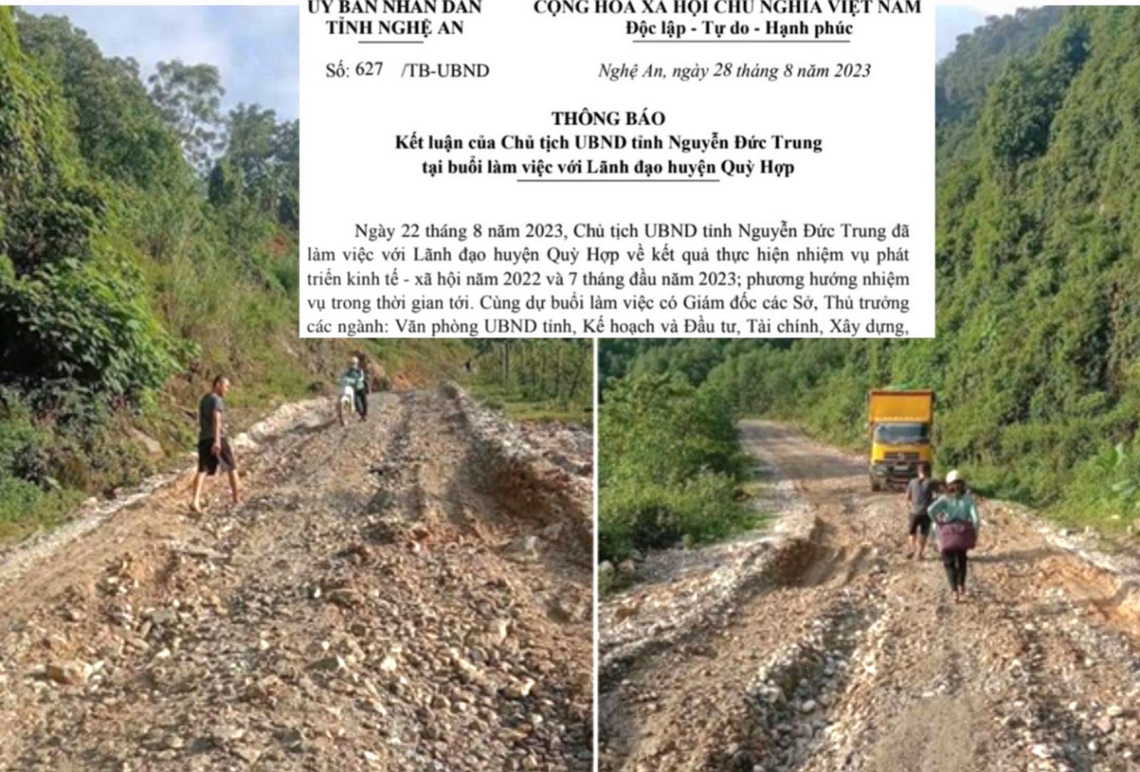 Ngày 28/8, tại thông báo kết luận sau cuộc làm việc, Chủ tịch UBND tỉnh thống nhất chủ trương mà huyện Quỳ Hợp đề nghị; đồng thời giao Sở Giao thông vận tải chủ trì, phối hợp với Sở Kế hoạch và Đầu tư, Sở Tài chính và các cơ quan liên quan rà soát về quy mô, lập hồ sơ, thủ tục chuẩn bị đầu tư trên cơ sở lồng ghép nhiều nguồn vốn để thực hiện, trình cấp có thẩm quyền xem xét, quyết định theo đúng quy định.