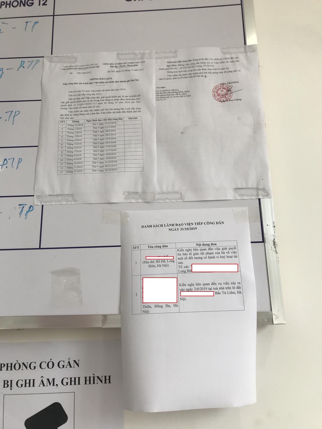 Tuy nhiên, ông này từ chối bố trí cho công dân gặp lãnh đạo Viện trong ngày tiếp công dân định kì tháng 10/2019 như đã công bố trên lịch với lí do lãnh đạo Viện chỉ tiếp những công dân có lịch đăng kí trước đó. Có điều, trong lịch tiếp công dân được công bố trên trang web của Viện KSND TP Hà Nội không yêu cầu đăng kí trước (http://vkshanoi.gov.vn/chitietthongbao?thongbao=1077) và danh sách công bố tại Phòng Tiếp công dân của Viện KSND TP Hà Nội tại địa điểm mới là số 95 Trần Thái Tông, Cầu Giấy, Hà Nội chỉ có 2 người đã đăng kí trước cho buổi tiếp công dân ngày 31/10/2019.
