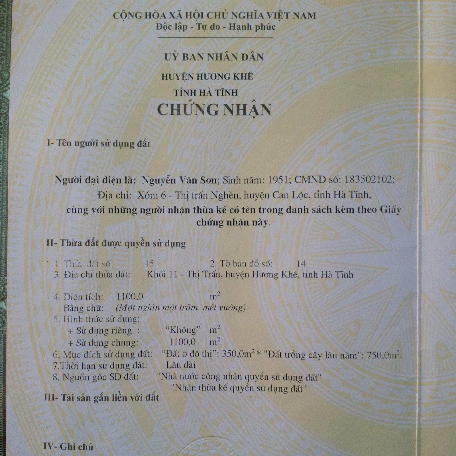 Tuy nhiên, trên thực tế và theo các tài liệu có giá trị pháp lý thì mảnh đất này lại không thuộc quyền sử dụng của Nguyễn Văn Lâm. Văn bản số 56/10 VP/UB ngày 20/11/1987 của UBND huyện Hương Khê xác định rằng mảnh đất thuộc quyền sử dụng của ông Nguyễn Văn Tư (sau khi ông Tư chết, mảnh đất được thừa kế cho 5 người con đồng sử dụng).