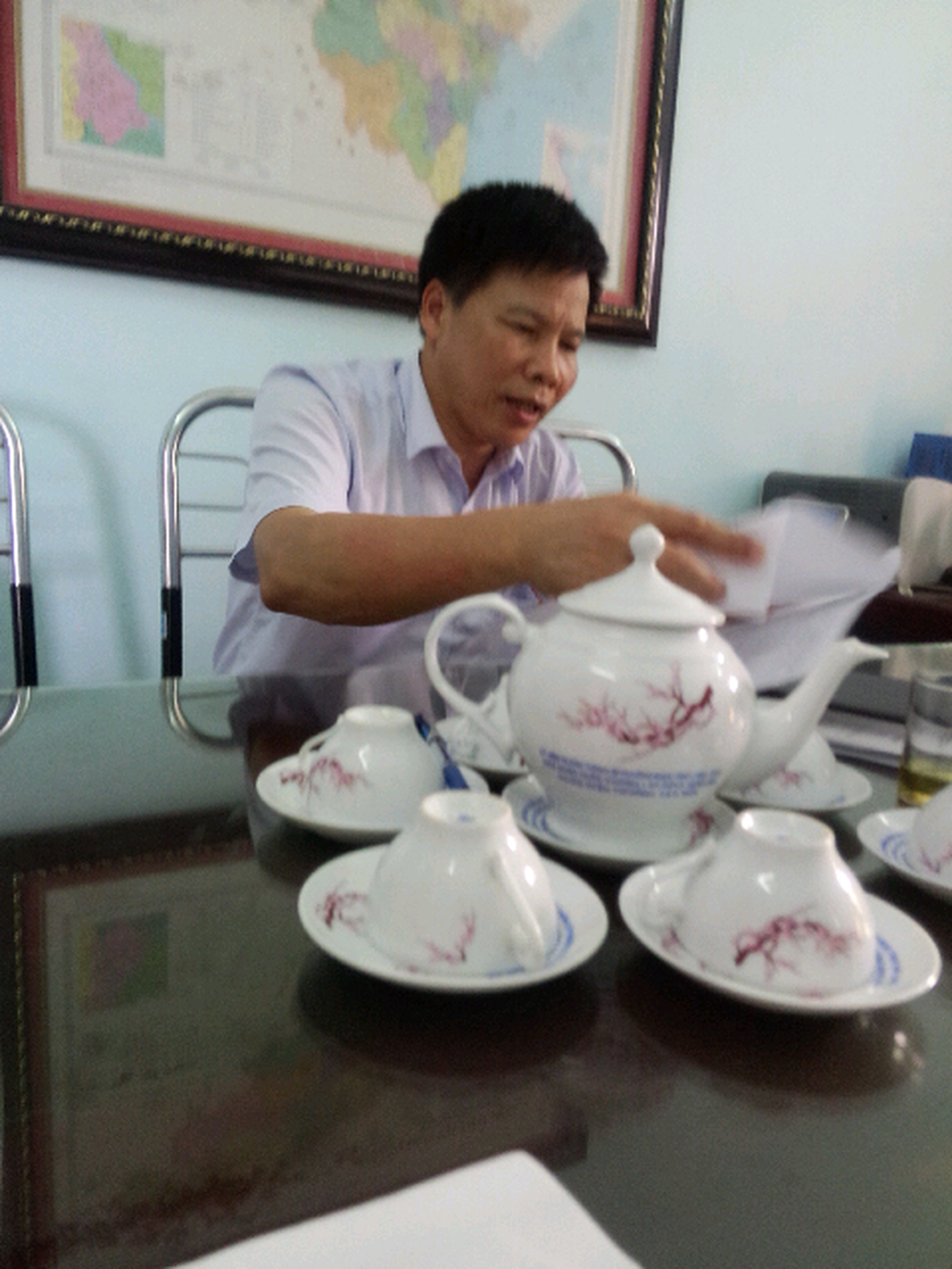 Ông Nguyễn Hữu Đại, Chủ tịch UBND phường Ngọc Trạo trao đổi sự việc với phóng viên. Ảnh: VT