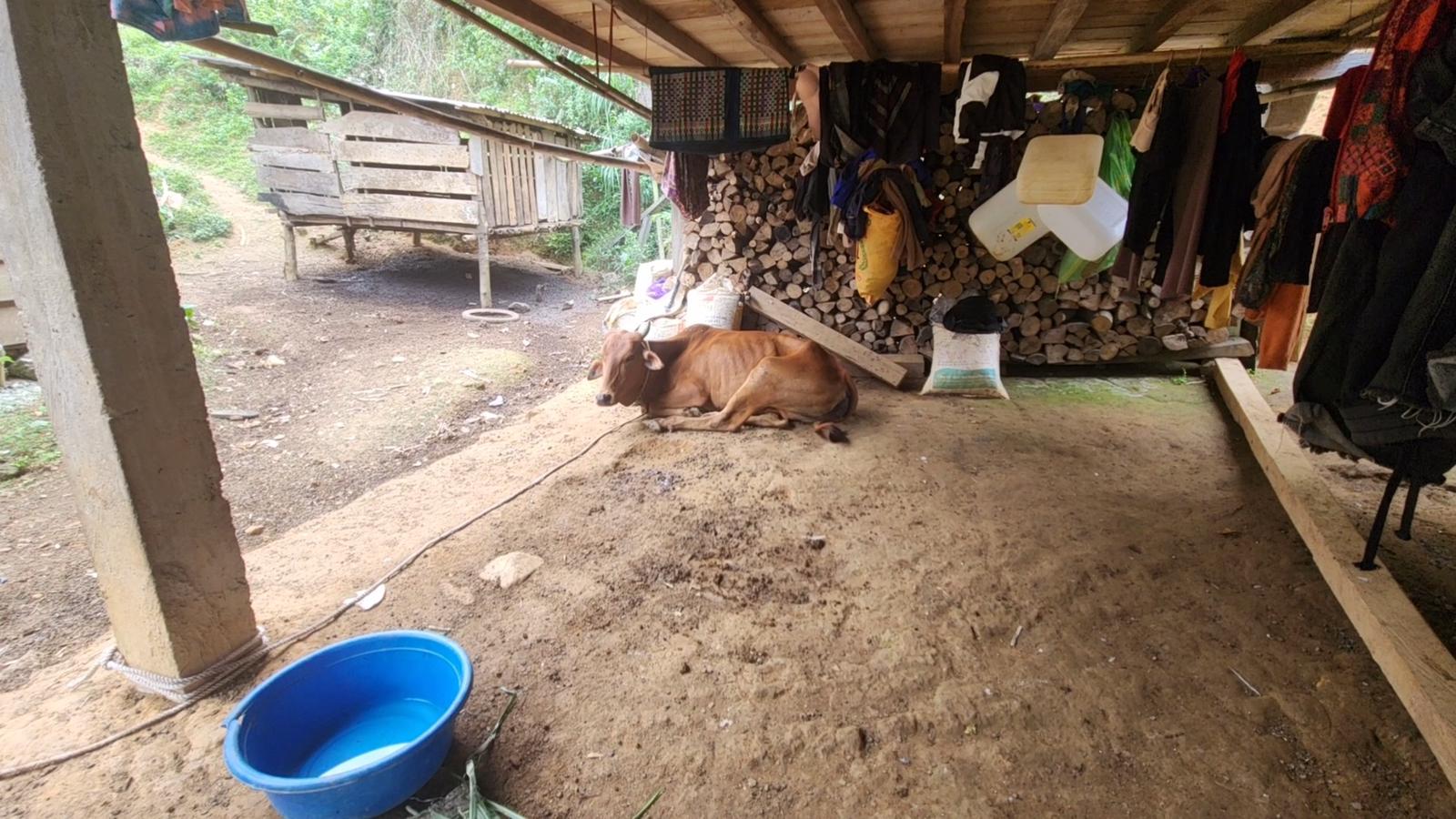Con bò của hộ Hồ Văn Tinh được cấp lại (thiếu hụt 14kg so với hồ sơ phê duyệt dự án) nhưng không được kiểm tra lâm sàng trước khi đưa về cho người dân. Ảnh: Minh Tân