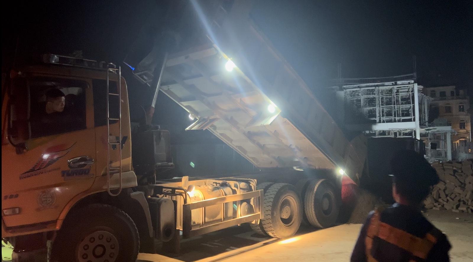 Đến khoảng 23h30, tổ công tác đang tuần tra tại tuyến đường TL 427 (huyện Thường Tín) đã phát hiện xe tải BKS 29H-590.81 có dấu hiệu cơi nới thành thùng nên đã ra hiệu lệnh dừng xe. Thế nhưng lái xe đã không chấp hành, tăng ga bỏ chạy. Sau khi áp sát và dừng được xe, thì người lái xe này ngay lập tức nâng ben đổ vật liệu xuống đường.