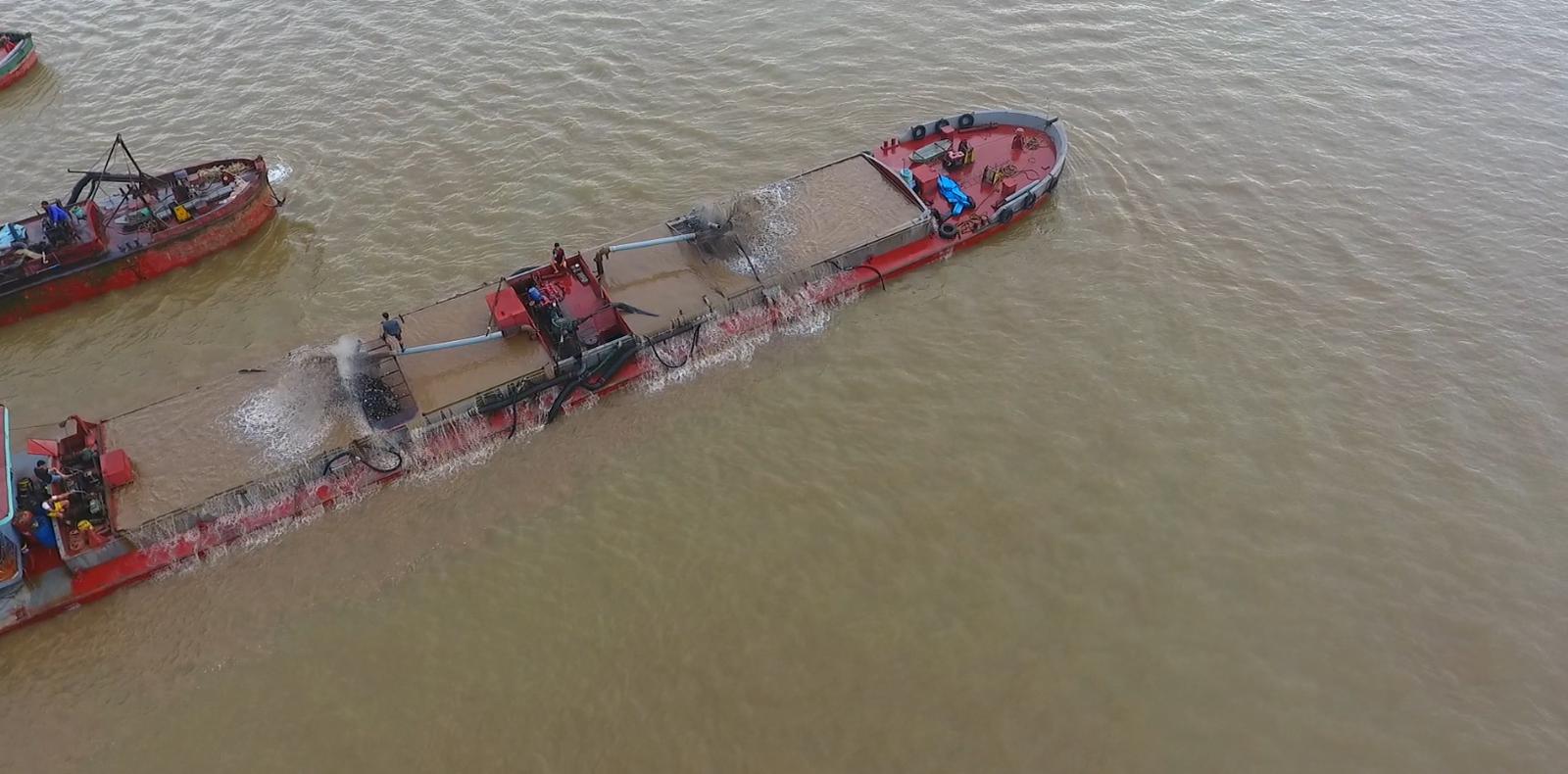 Giấy phép cấp là khai thác mỏ cát tại bãi bồi nhưng thực tế doanh nghiệp lại cho tàu hút cát giữa lòng sông. Ảnh: ND