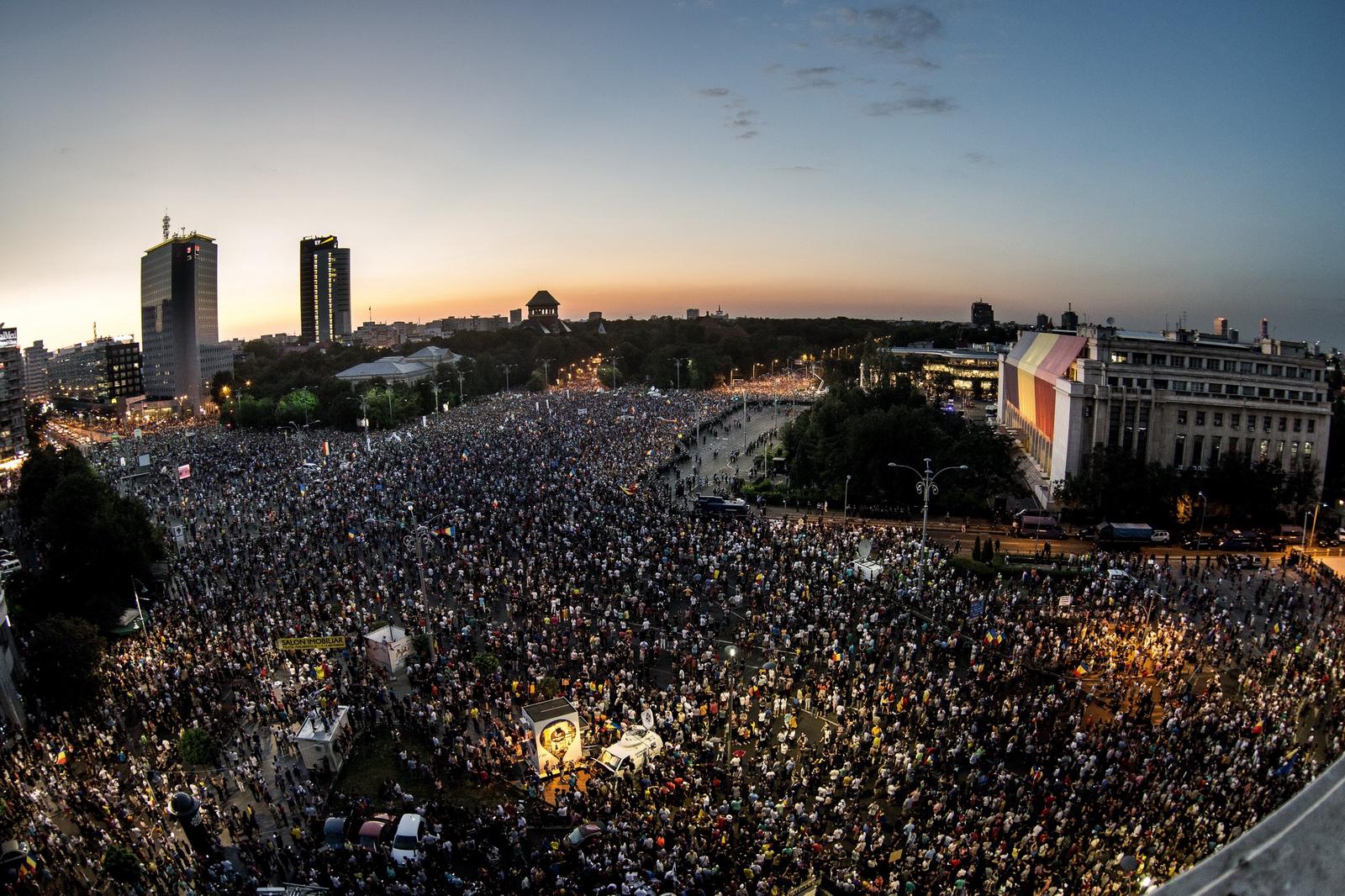 Người dân tham gia biểu tình phản đối tham nhũng tại Bucharest, Romania ngày 10/8/2018. (Ảnh: AFP/TTXVN)