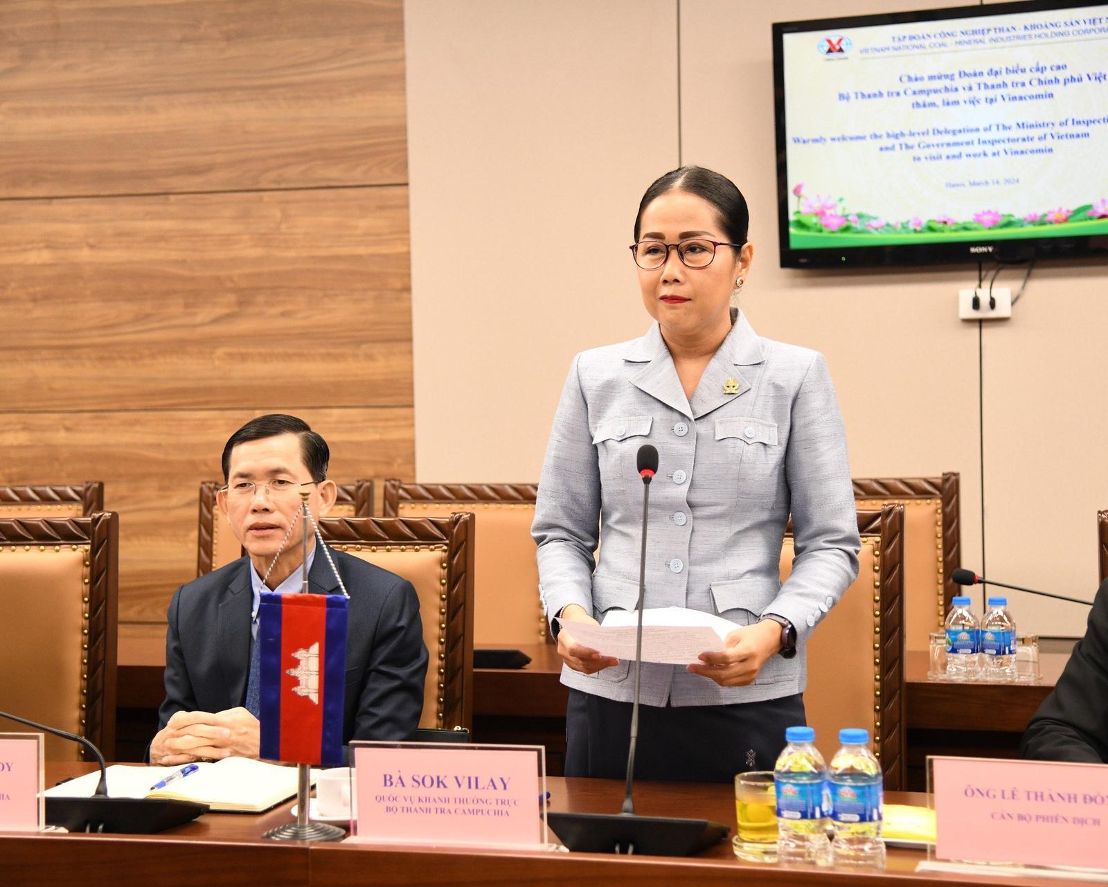 Bà Sok Vilay phát biểu cảm ơn Thanh tra Chính phủ, TKV đã đón tiếp chu đáo đoàn thăm và trao đổi nghiệp vụ tại Việt Nam. Ảnh: TH