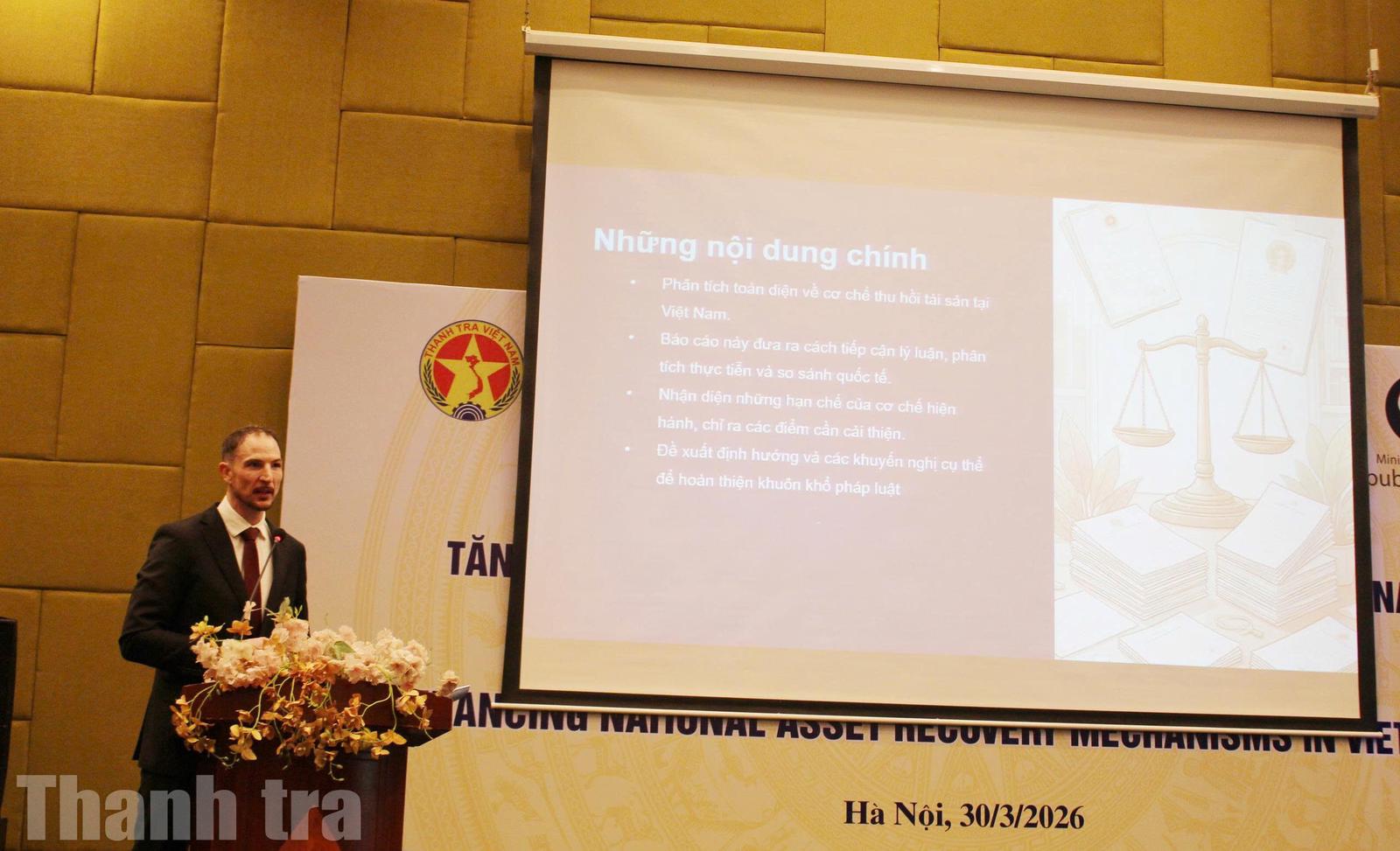 (Thanh tra) - Tại Hội thảo quốc tế về tăng cường hiệu quả cơ chế thu hồi tài sản tại Việt Nam do Thanh tra Chính phủ phối hợp với Văn phòng Cơ quan Phòng, chống ma túy và tội phạm của Liên hợp quốc (UNODC) tổ chức ngày 30/3/2026, đại diện UNODC đã nêu ra nhiều kinh nghiệm của một số quốc gia.