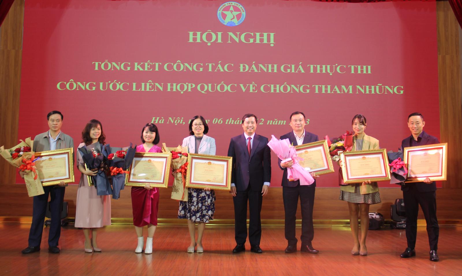 Sự tham gia của các thành viên tổ công tác, nhóm chuyên gia đến từ các cơ quan, bộ ngành được TTCP ghi nhận và đánh giá cao. Trong ảnh: Phó Tổng Thanh tra Dương Quốc Huy trao bằng khen cho các tập thể, cá nhân có thành tích trong công tác đánh giá thực thi UNCAC. Ảnh: TH