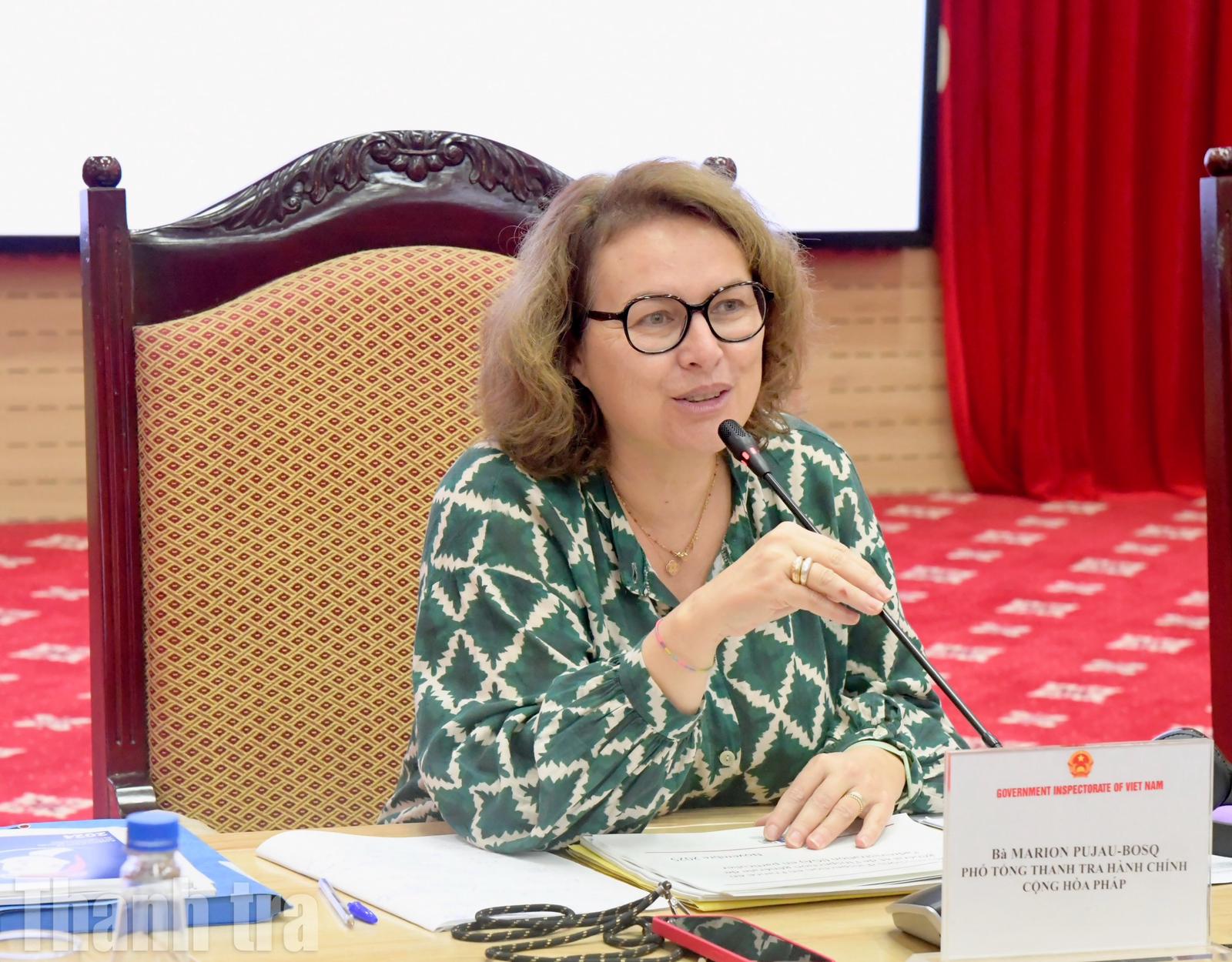 Bà Marion Pujau-Bosq nhấn mạnh, công tác xử lý sau thanh tra tại Pháp gắn liền với cải cách hành chính và đánh giá hiệu quả chính sách công. Sau mỗi cuộc thanh tra, các khuyến nghị được đưa vào chương trình hành động của Chính phủ, báo cáo Quốc hội và công khai kết quả, tạo thành chu trình cải thiện liên tục.