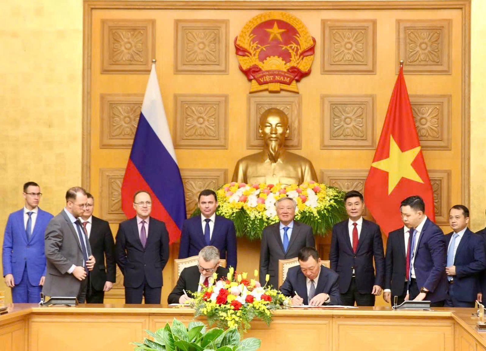 Tại buổi làm việc ngày 3/12/2025, Phó Thủ tướng Thường trực Nguyễn Hòa Bình và Trợ lý Tổng thống Nga Mironov Dmitry đã chứng kiến lễ ký và trao Bản ghi nhớ hợp tác giữa Thanh tra Chính phủ Việt Nam và Cơ quan Công vụ, Nhân sự và Chống tham nhũng Liên bang Nga. Ảnh: Thanh Lương