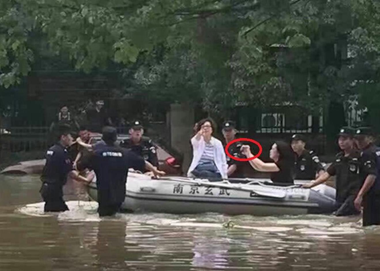 Hôm 6/7 vừa qua trên mạng xã hội Trung Quốc xuất hiện bức ảnh chụp một phụ nữ mặc áo trắng ngồi trên xuồng cao su có mấy chữ “Nam Kinh Huyền Vũ”, được mấy cảnh sát đặc nhiệm lội dưới nước đẩy đi. Cảnh tượng giống như kiểu quan lớn đi tuần thời xưa.