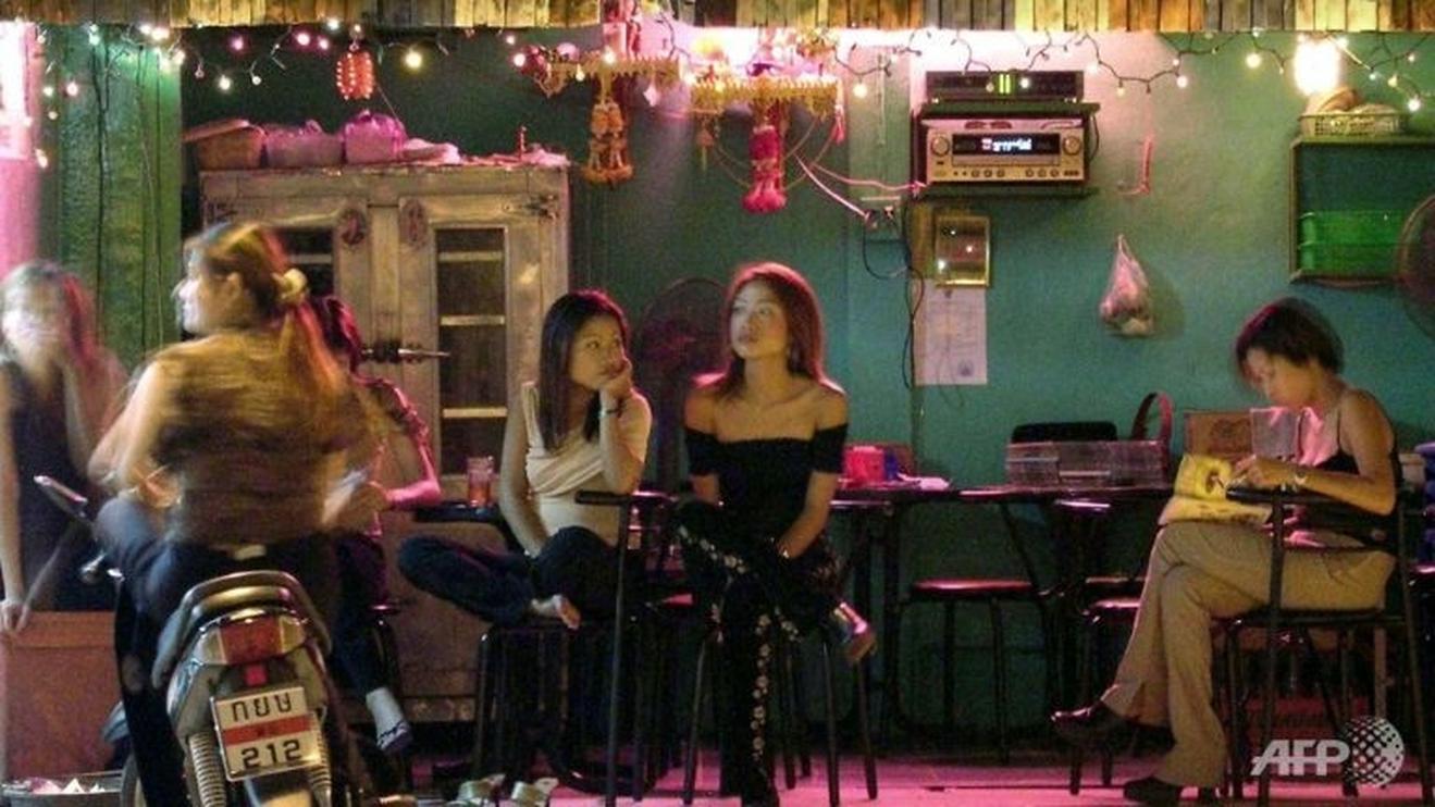 Gái mại dâm ngồi đợi khách bên trong một nhà thổ ở "khu đèn đỏ" Bangkok