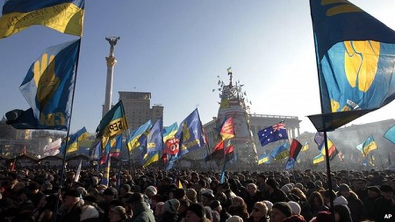Người dân Ukraina biểu tình phản đối tình trạng tham nhũng gia tăng ở Ukraina. Ảnh: AP