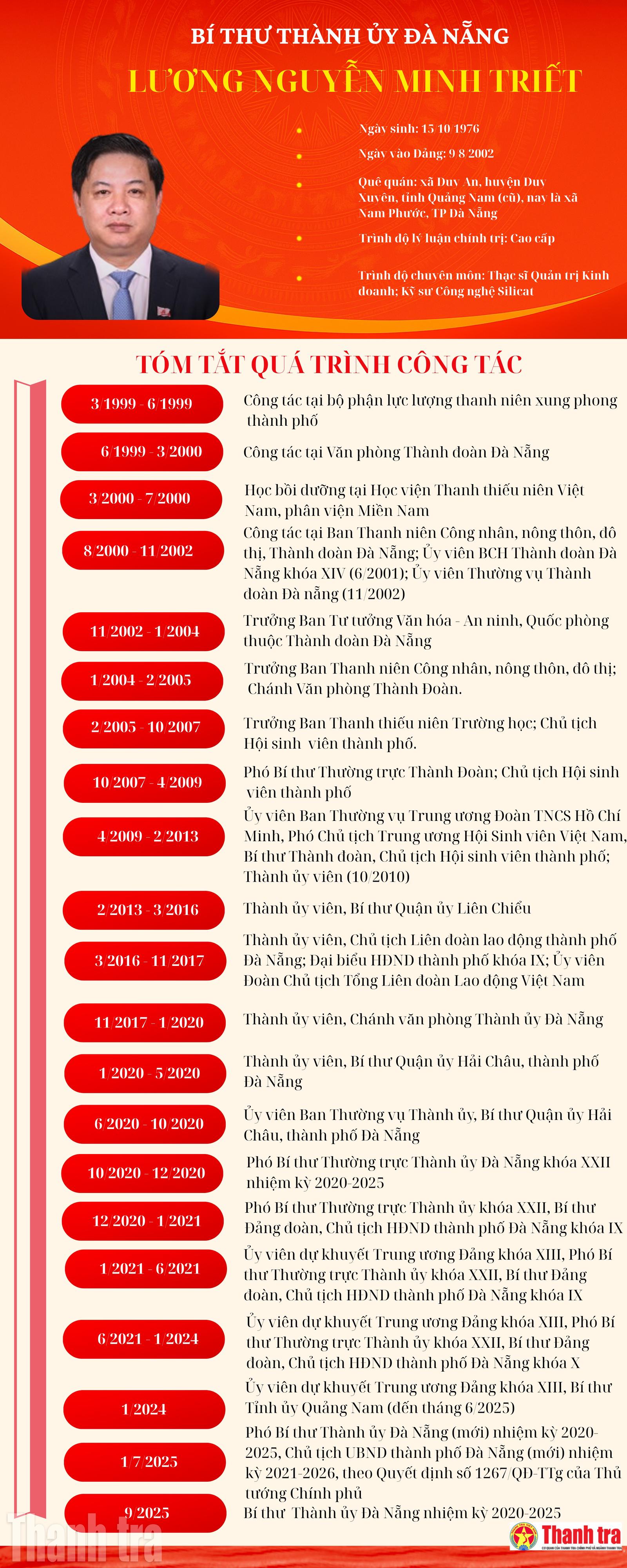 (Thanh tra) - Đồng chí Lương Nguyễn Minh Triết, Chủ tịch UBND TP Đà Nẵng, vừa được Bộ Chính trị chỉ định giữ chức Bí thư Thành ủy Đà Nẵng nhiệm kỳ 2020 – 2025.