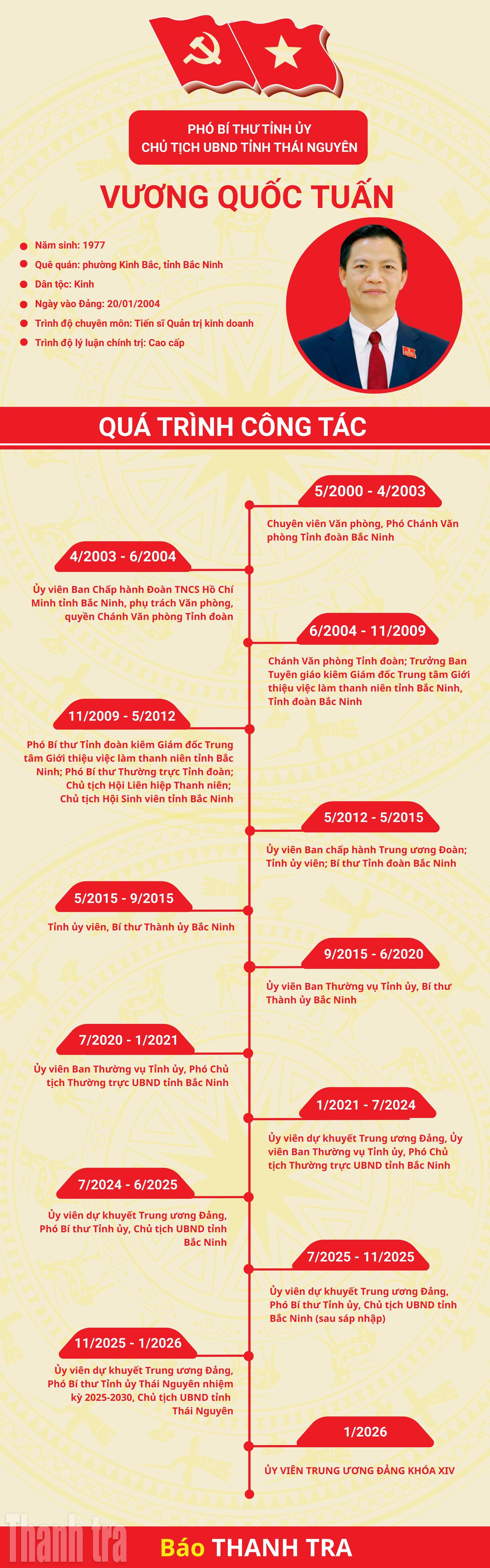 (Thanh tra) - Tại Đại hội XIV của Đảng, ông Vương Quốc Tuấn, Phó Bí thư Tỉnh ủy, Chủ tịch UBND tỉnh Thái Nguyên đã tái đắc cử Ủy viên Trung ương Đảng khóa XIV.