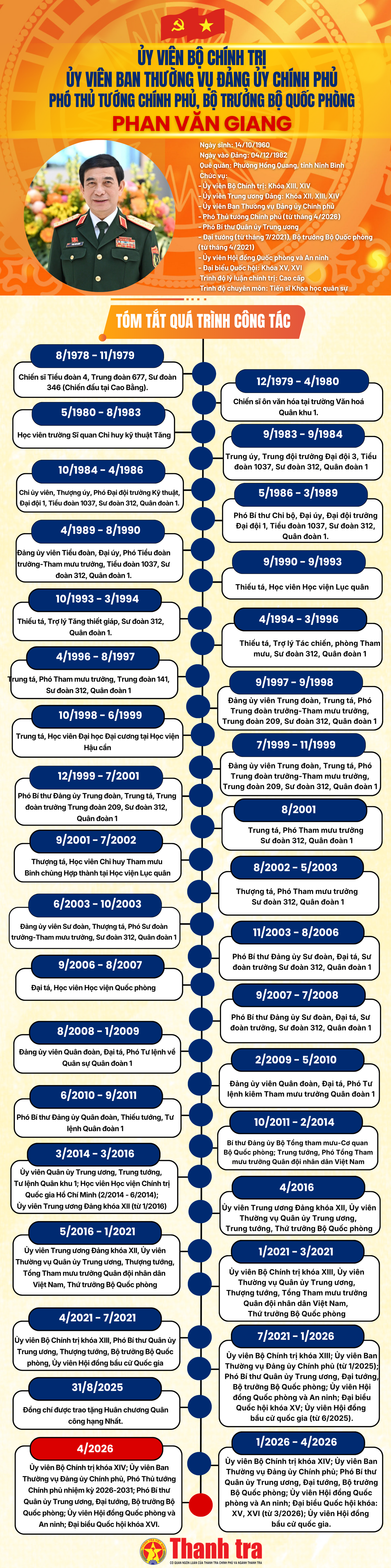 (Thanh tra) - Tại phiên họp sáng 8/4, Kỳ họp thứ Nhất, Quốc hội khóa XVI đã thông qua Nghị quyết phê chuẩn việc bổ nhiệm Phó Thủ tướng Chính phủ. Theo đó, Đại tướng Phan Văn Giang được Quốc hội phê chuẩn bổ nhiệm giữ chức Phó thủ tướng Chính phủ nhiệm kỳ 2026 - 2031 kiêm Bộ trưởng Bộ Quốc phòng.