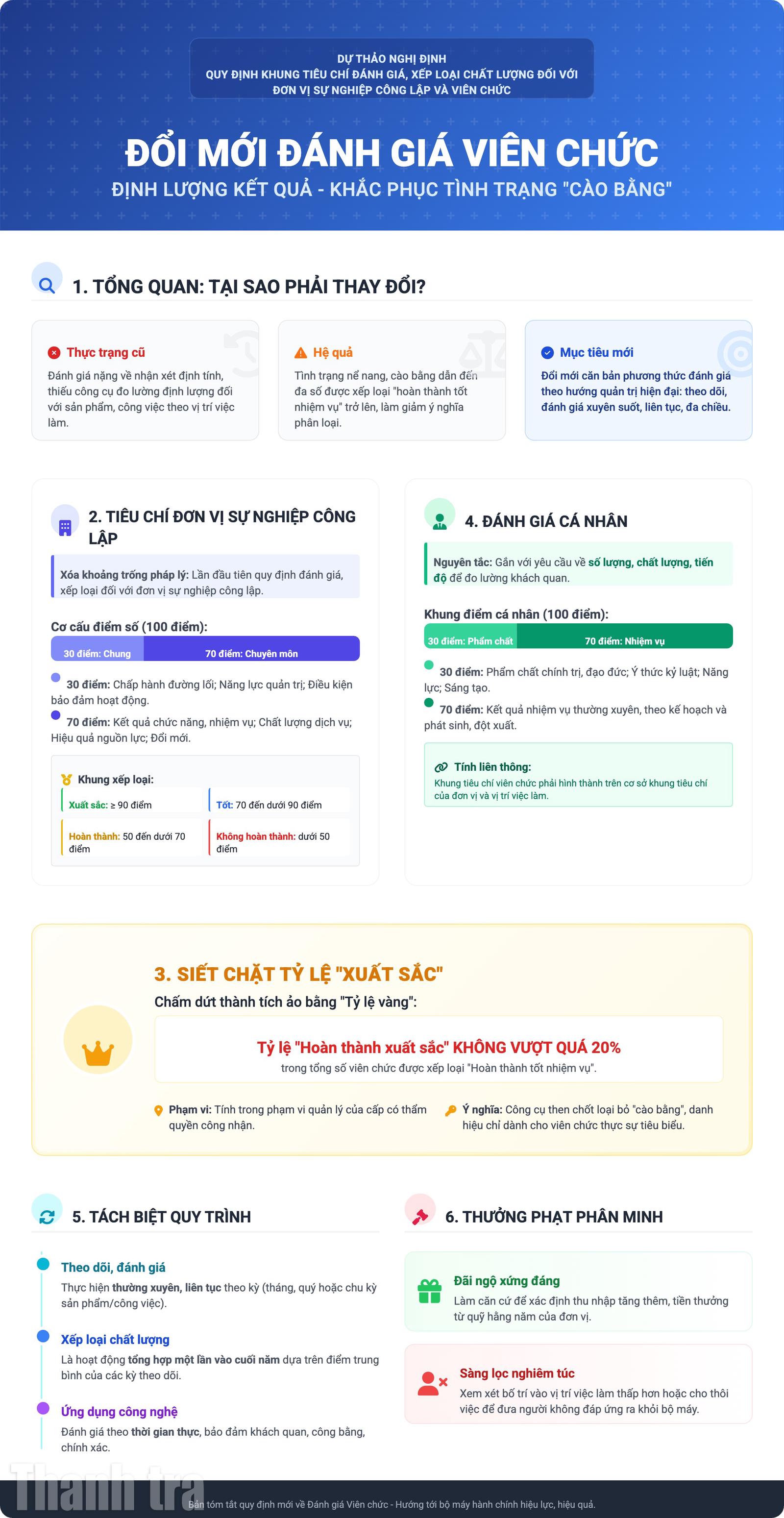 (Thanh tra) - Không còn tình trạng "cào bằng" trong bình xét, những thay đổi cốt lõi tại dự thảo sửa đổi Nghị định quy định khung tiêu chí đánh giá, xếp loại chất lượng đối với đơn vị sự nghiệp công lập và viên chức sẽ là thước đo chính xác để đãi ngộ xứng đáng, giúp viên chức tận tâm hơn với công việc.