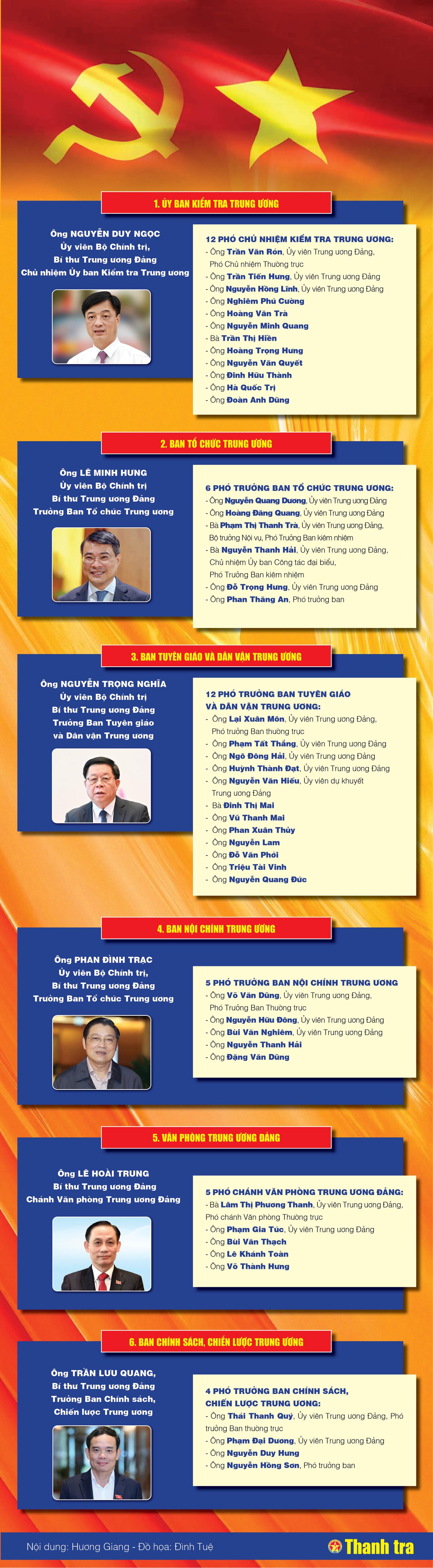 Lãnh đạo các Ban Đảng Trung ương nhiệm kỳ 2021-2026 sau sắp xếp