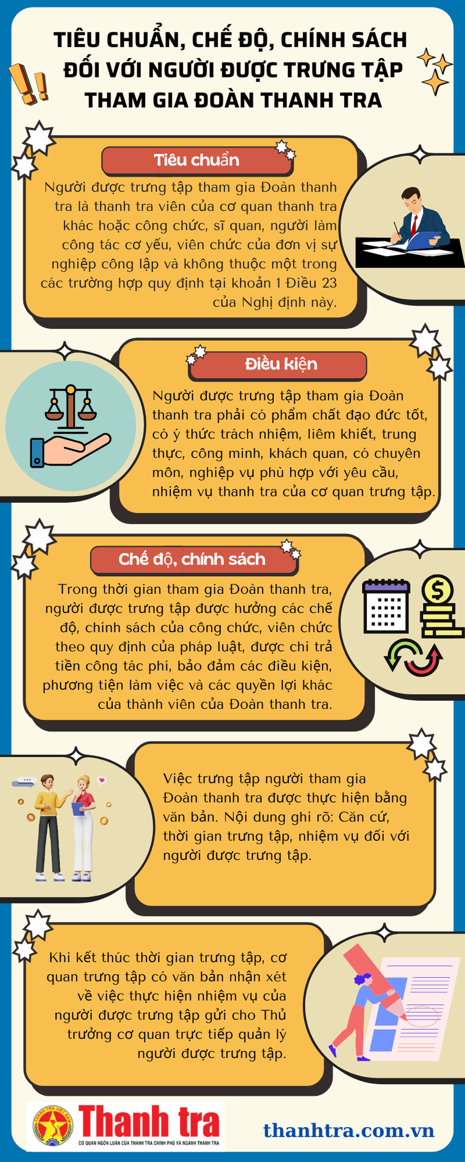 Tiêu chuẩn, chế độ của người được trưng tập tham gia đoàn thanh tra